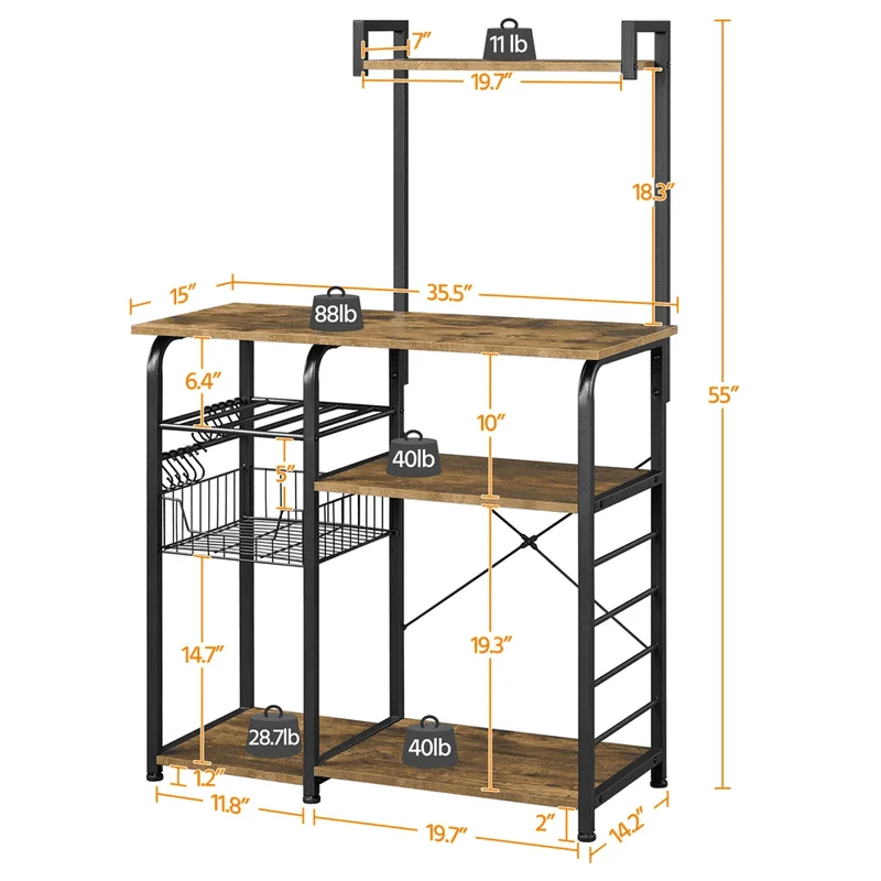 mZBPCtypgHere you can buy 35.5" Kitchen Storage Shelf Baker's Rack with 10 Hooks, Rustic Brown with free delivery to your post office.