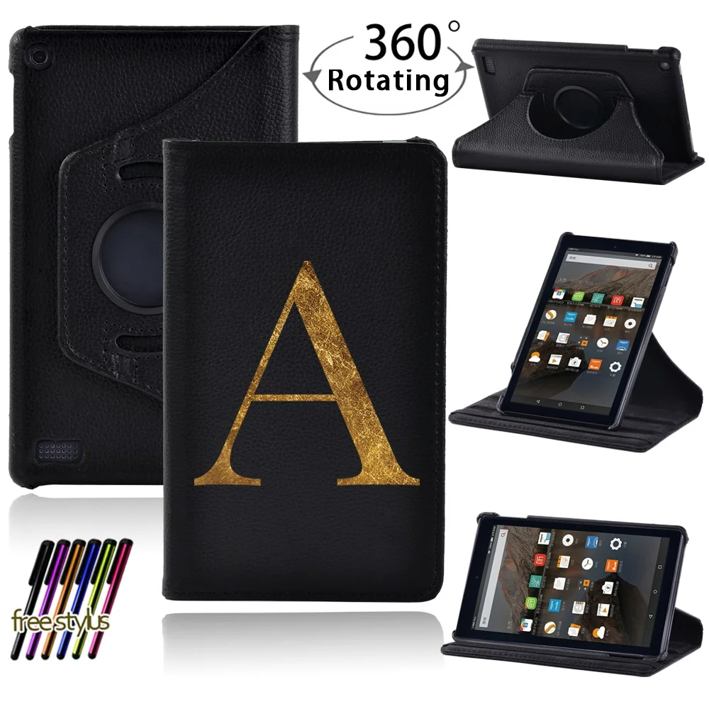 360 Degree Rotating Tablet Case for Amazon Fire 7 5th 7th 9th Pu Leather Simple Letter Dust-proof Stand Tablet Case+Free Stylus - Купить с бесплатной доставкой