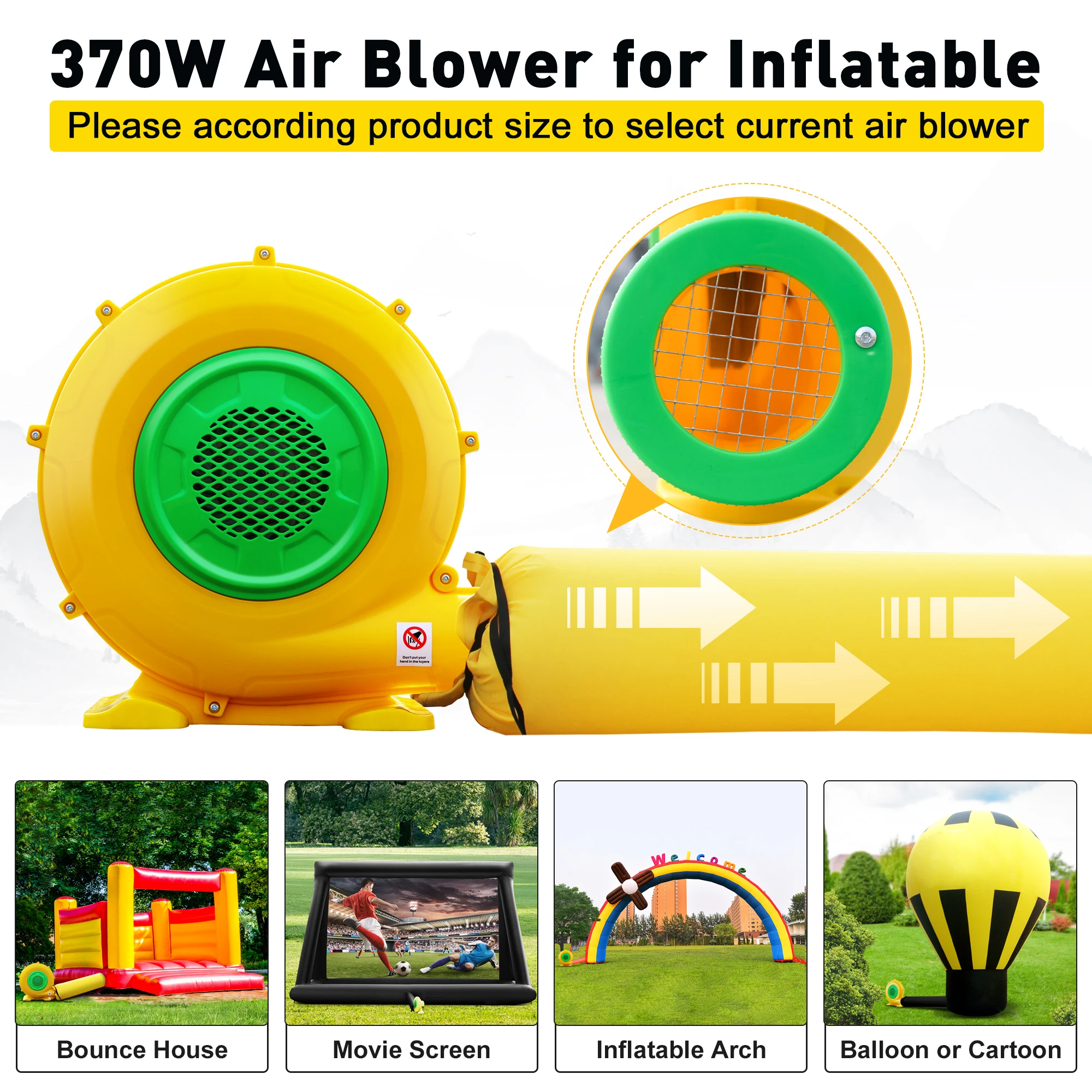 EzEXaFbvUWHere you can buy 370W Inflatable Air Blower Pump Fan Commercial Inflatable Bounce House Blower Used for Inflatable Bouncy Castle and Jump Slides with free delivery to your post office.