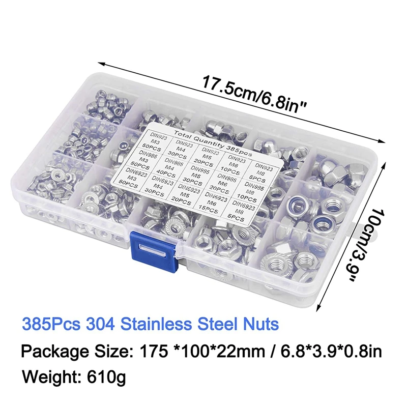 oOtCjHWQCsДолго искали 385Pcs Lock Nut Assortment Hex Flange Nuts M3 M4 M5 M6 M8 Stainless Steel Insert Nylon Locknut Metric Fastners Assorted, но не могли найти? Предоставляем вашему вниманию 385Pcs Lock Nut Assortment Hex Flange Nuts M3 M4 M5 M6 M8 Stainless Steel Insert Nylon Locknut Metric Fastners Assorted по лучшей цене на рынке!