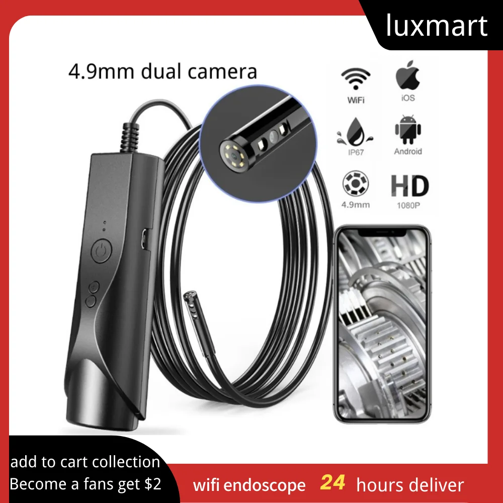 "3.9mm/5.5mm/4.9mm/8mm WIFI Dual Lens Endoscope Camera Flexible Borescope for Pipeline Car Inspection Support IOS Android Phone" * Buy Now Just For 25$