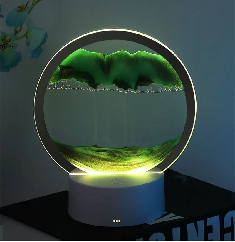 "3D Colorful Moving Sand Painting Hourglass Sandscape Led Table Lamp In Motion Display Quicksand Painting Picture Led Room Decor" * Buy Now Just For 22$