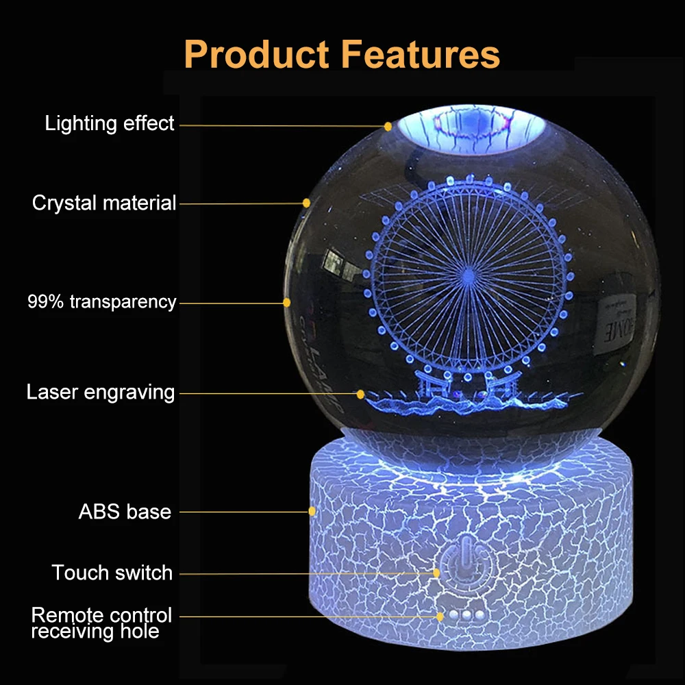 ufMPxlNXHere you can buy 3D Crystal Ball Night Light with Touch Color-Changing LED Lamp Base Galaxy Decorative Lights 16 Colors Changing Light For Kids with free delivery to your post office.
