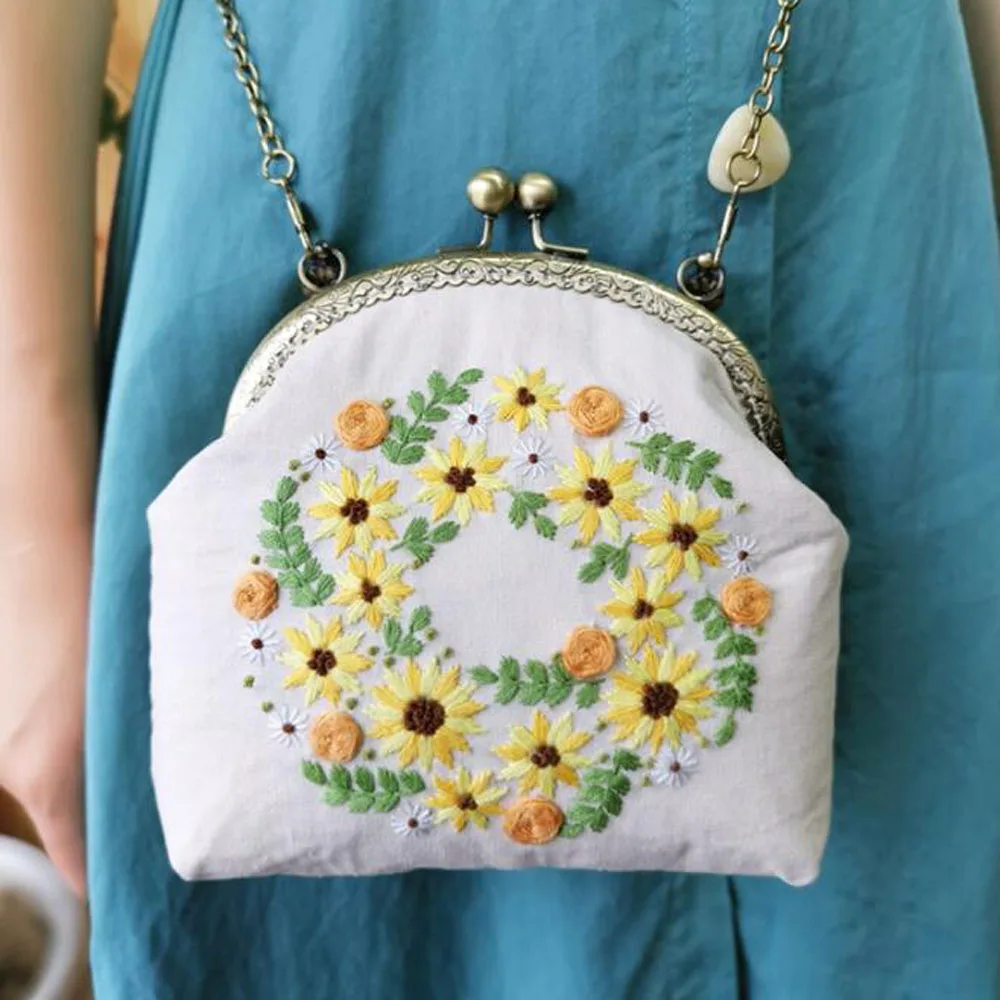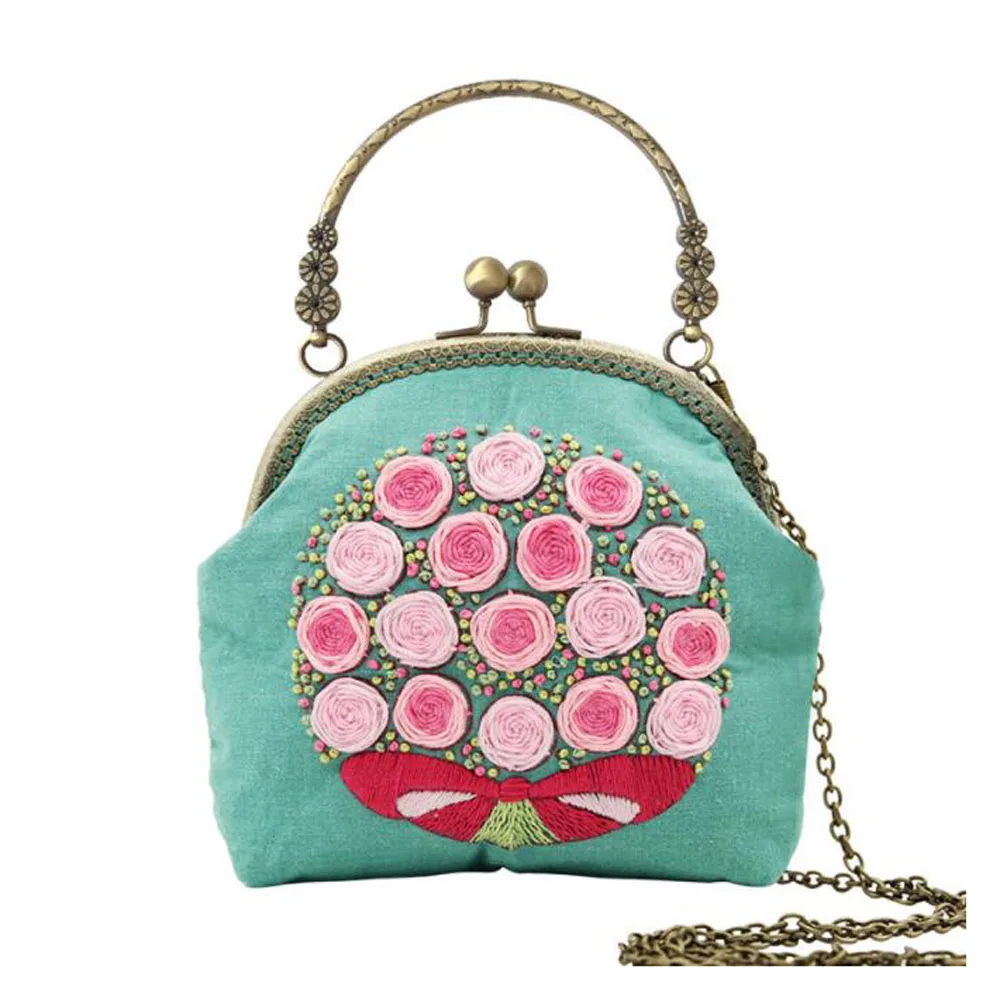 3D DIY Ribbon Embroidery Bag Set with Hoop Handmade Needlework Kits Cross Stitch Chain Bag Swing Purse Wallet Creative Gift - Купить с бесплатной доставкой