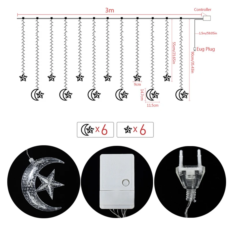3M Star Moon Curtain String Light LED Fairy Garland String Lamp Eid Mubarak Lighting For Ramadan Party Home Window Decor EU Plug - Купить с бесплатной доставкой
