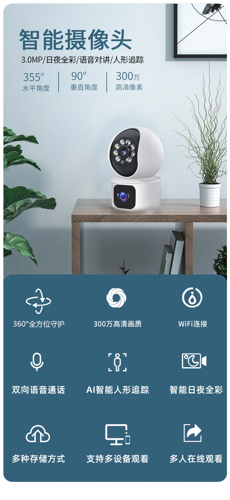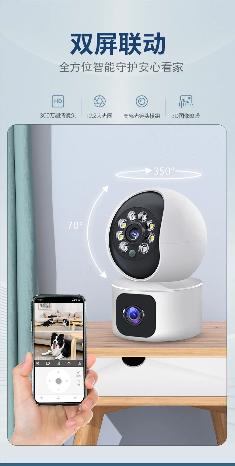 3MP 1296P Carecam App Dual Lens Double Screen Full Color PTZ IP Camera AI Humanoid Detection Home Security CCTV Baby Monitor - Купить с бесплатной доставкой