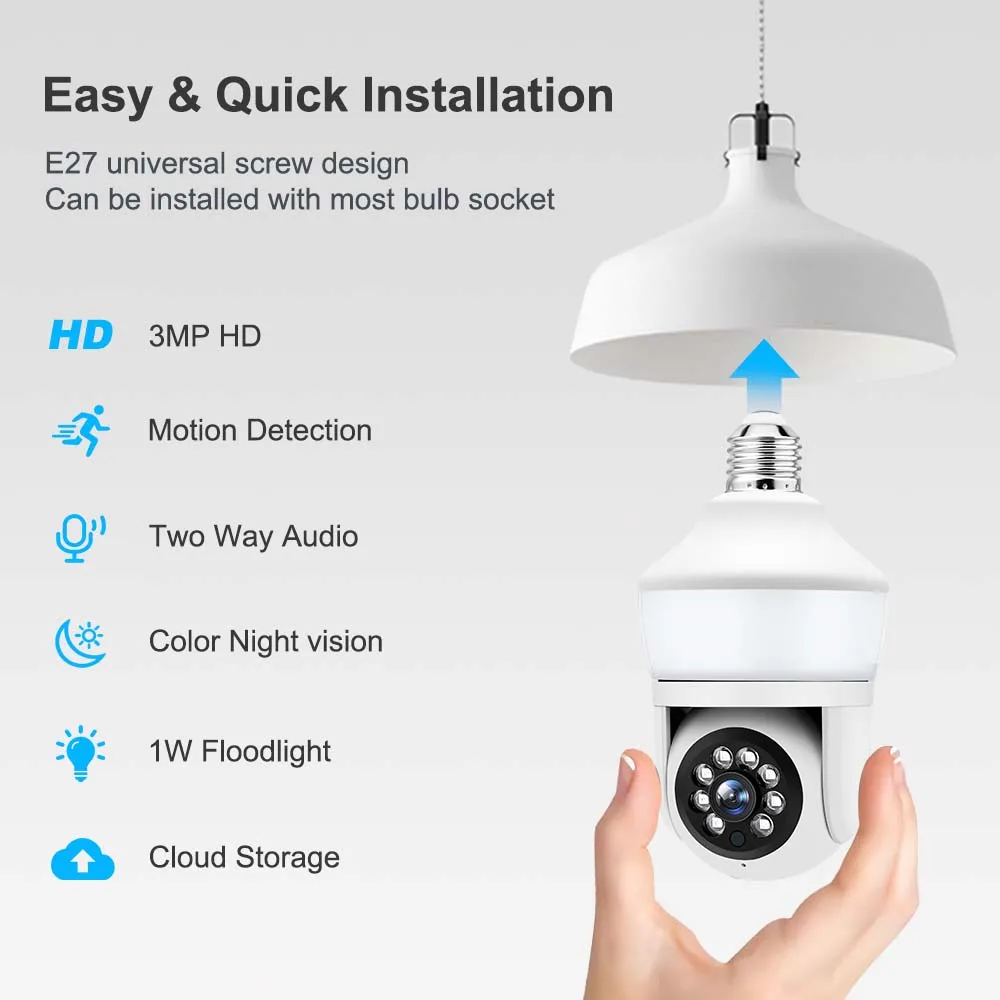 ePEGGWSRnzHere you can buy 3MP Wifi Bulb Camera 2K Surveillance Cameras AI Tracking Mini Baby Monitor Cam Security Protection Smart Home 360 ° Wifi Camera with free delivery to your post office.
