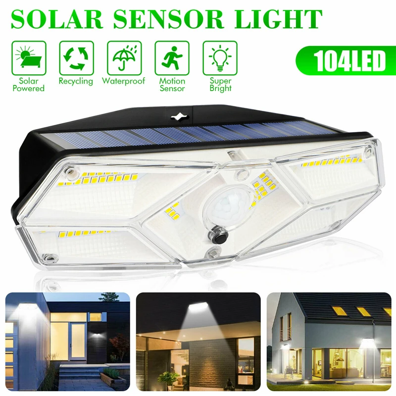 "3PCS 104 LED Wide Angle Solar Light 10M Sensoring Distance 120 Degree Sensoring Angle Outdoor Wall Lamp" * Buy Now Just For 52$