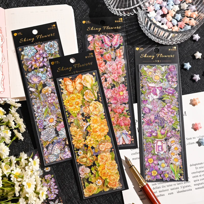 3PCS/package Exquisite Flower 3-d Gilding Sticker Flower Kuka Sticker Decorative Sticker Girls Hand Book - Купить с бесплатной доставкой