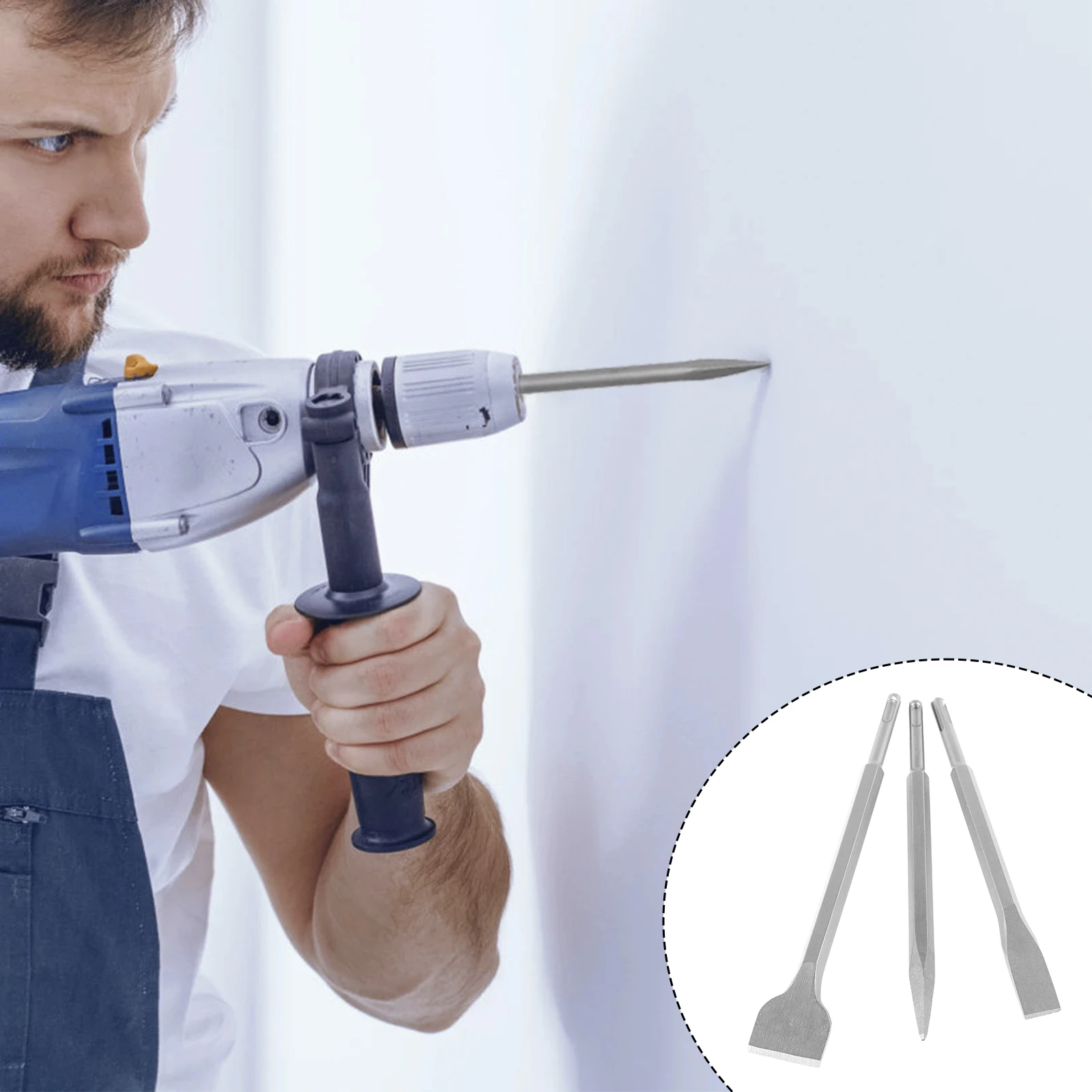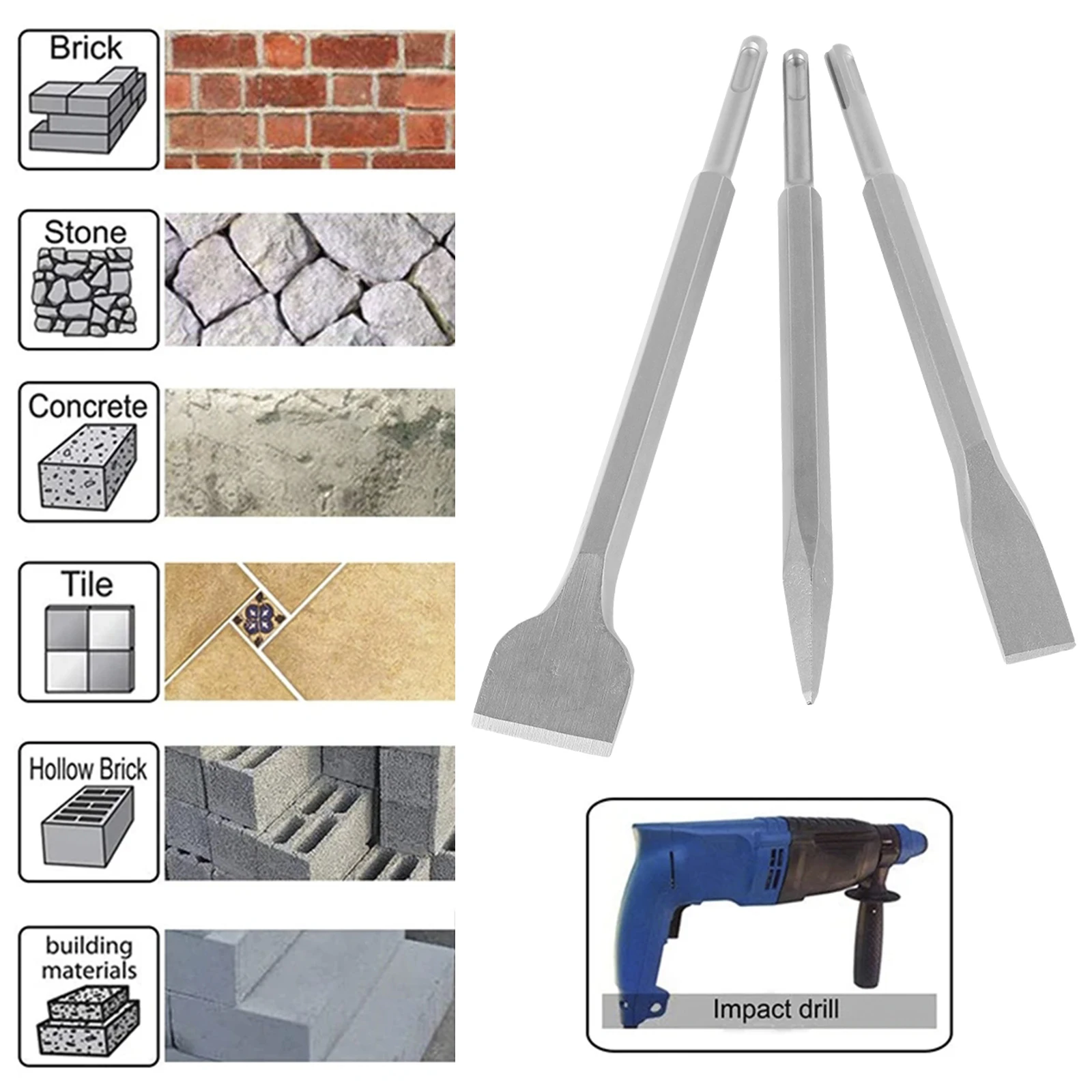3Pcs Chisel Drill Bit Tempered Steel Point Chisel Hex Shank Flat Chisel Rotary Hammer Spade Chisel Tile Removal Chisel Kit with - Купить с бесплатной доставкой