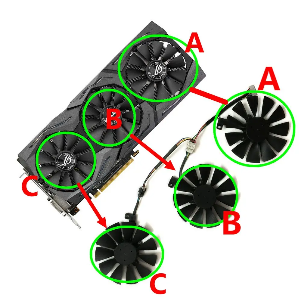 3Pcs/Set FDC10U12S9-C,GPU VGA Cooler,Graphic Card Fan,For ASUS STRIX GTX 1080Ti/980Ti RX VEGA RX480 RX580 Video - Купить с бесплатной доставкой