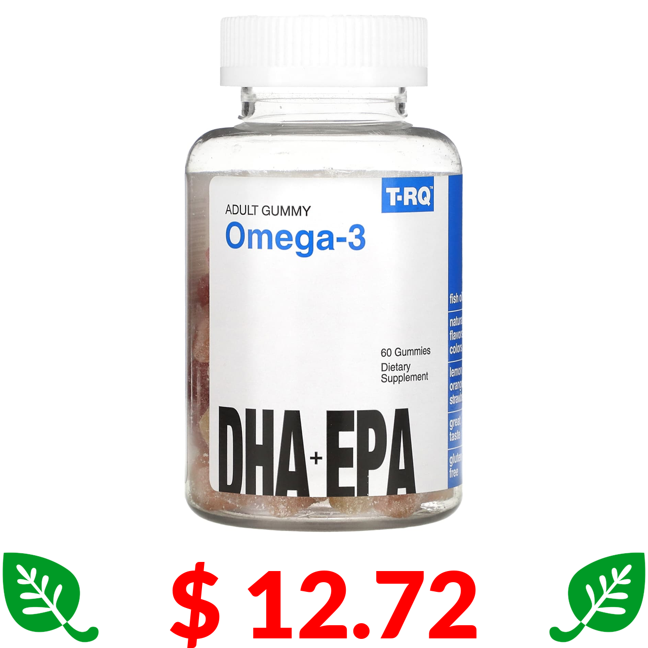 $ 12.72 T-RQ, Adult Gummy Omega-3, DHA + EPA, лимон, апельсин, полуниця, 60 жуйок