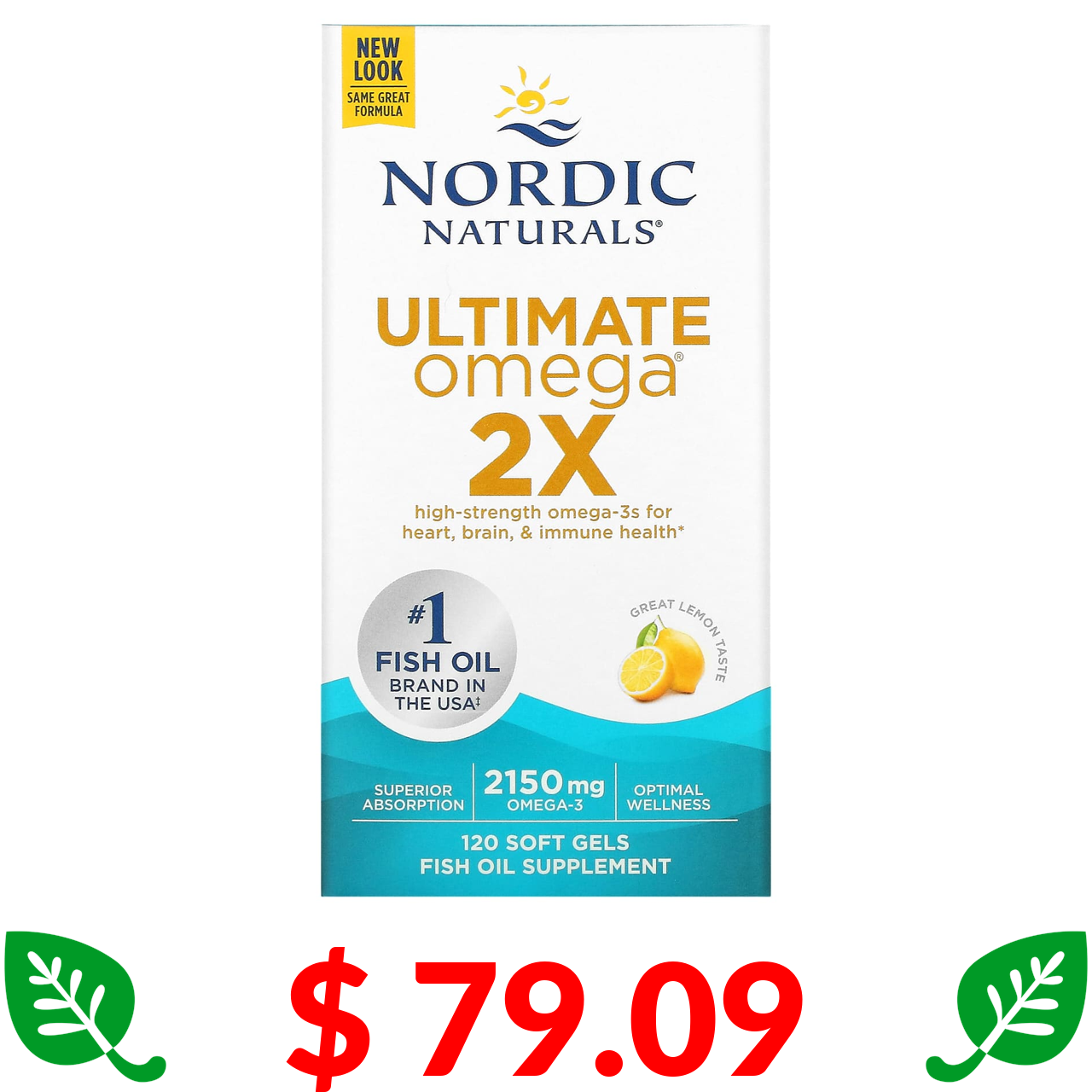$ 79.09 Nordic Naturals, Ultimate Omega 2X, зі смаком лимона, 1075 мг, 120 капсул