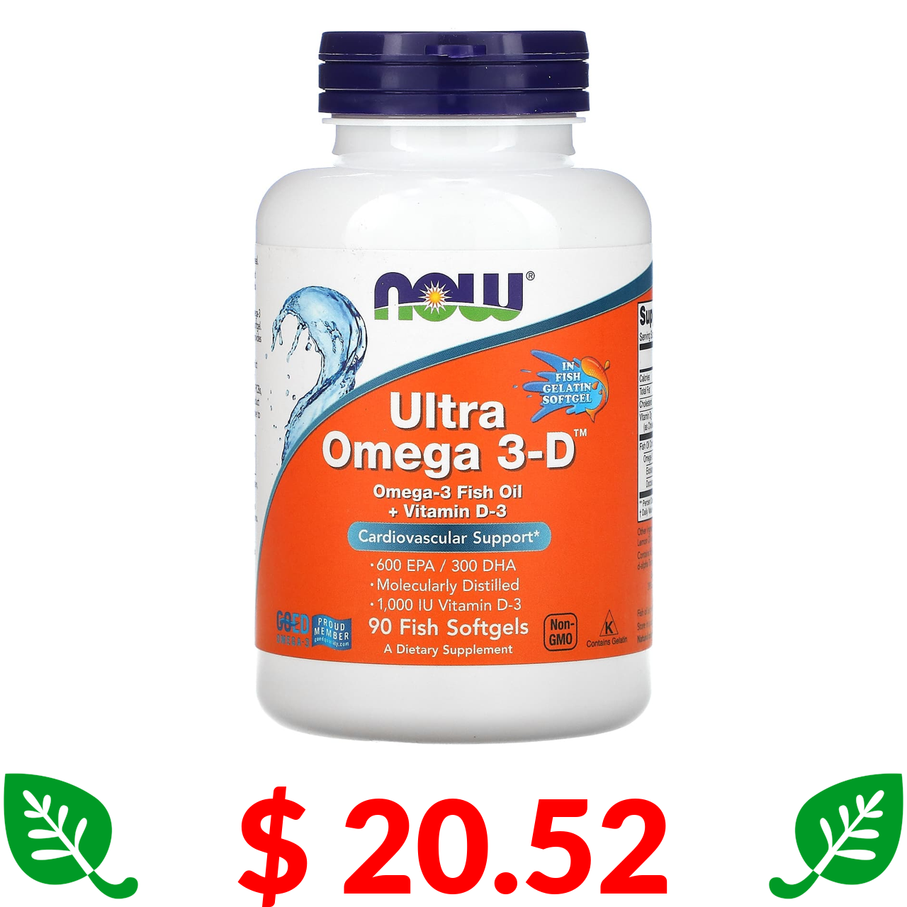 $ 20.52 Now Foods, Ultra Omega 3-D, 600 мг ЕПК / 300 мг ДГК, 90 рибних капсул