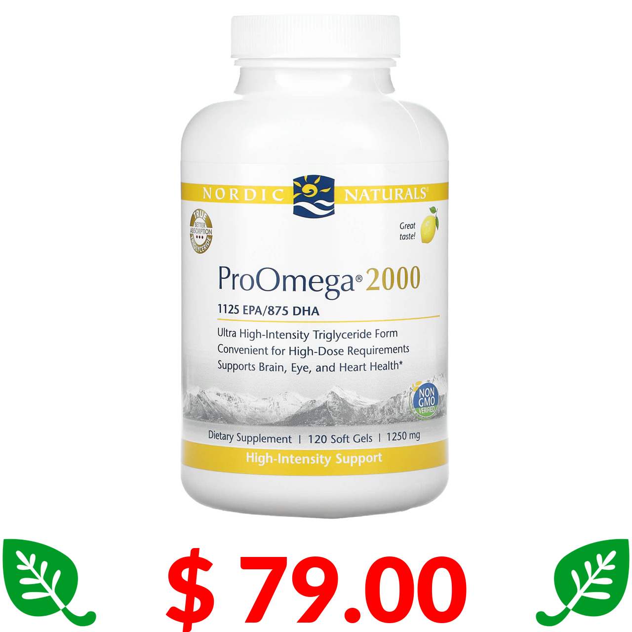 $ 79.00 Nordic Naturals, ProOmega 2000, лимон, 1250 мг, 120 капсул