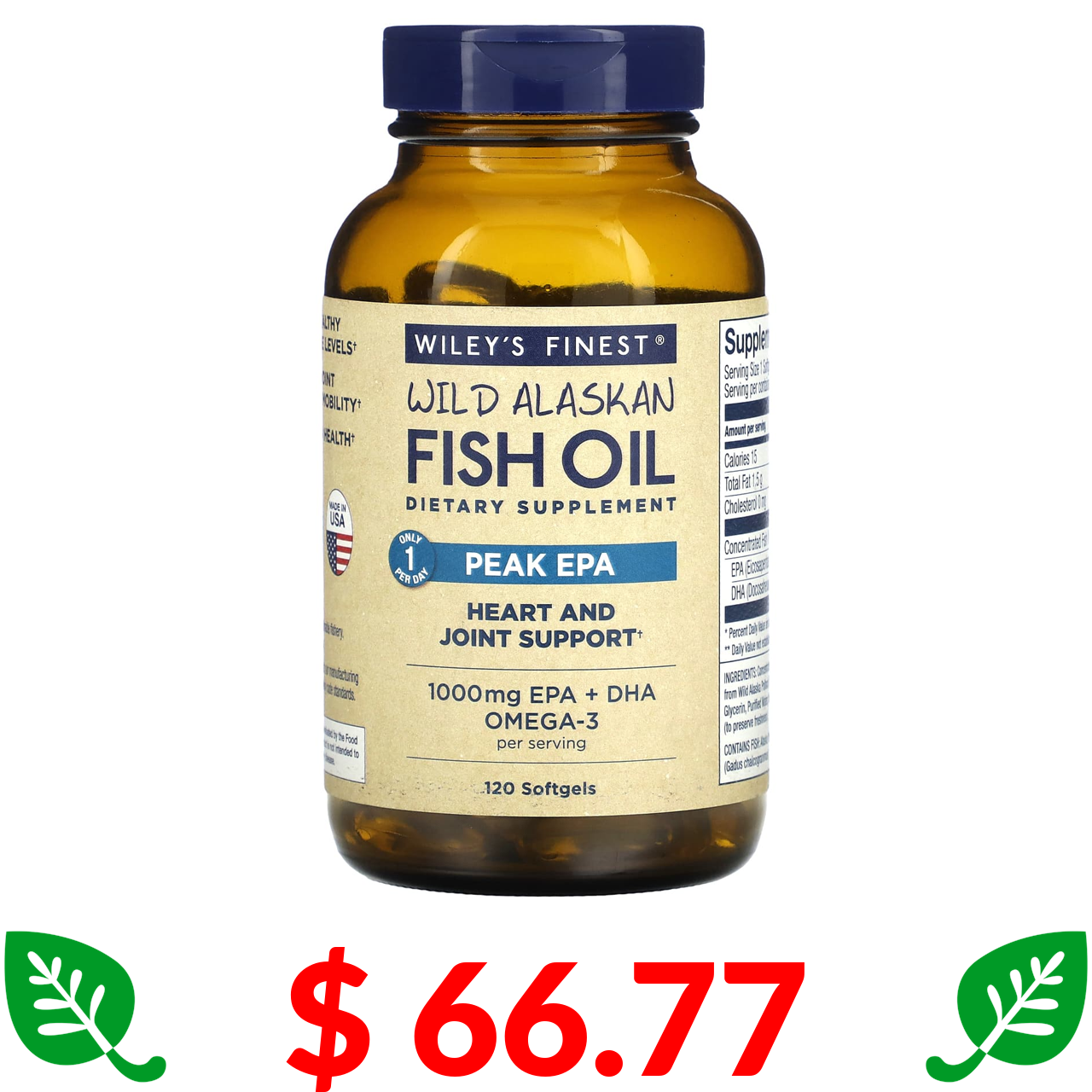 $ 66.77 Wiley's Finest, Жир дикої аляскинської риби, ефективна ЕПК, 120 капсул