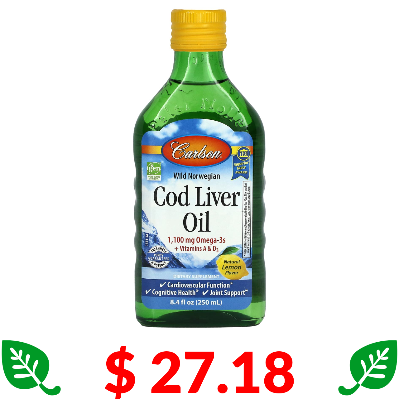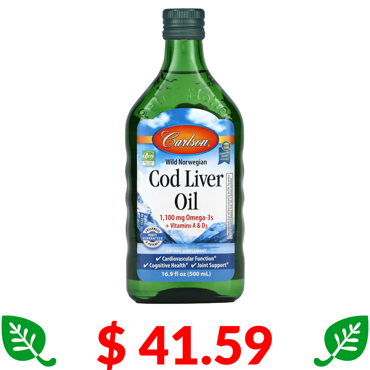 $ 41.59 Carlson, жир із печінки дикої норвезької тріски, 500 мл (16,9 рідк. унції)