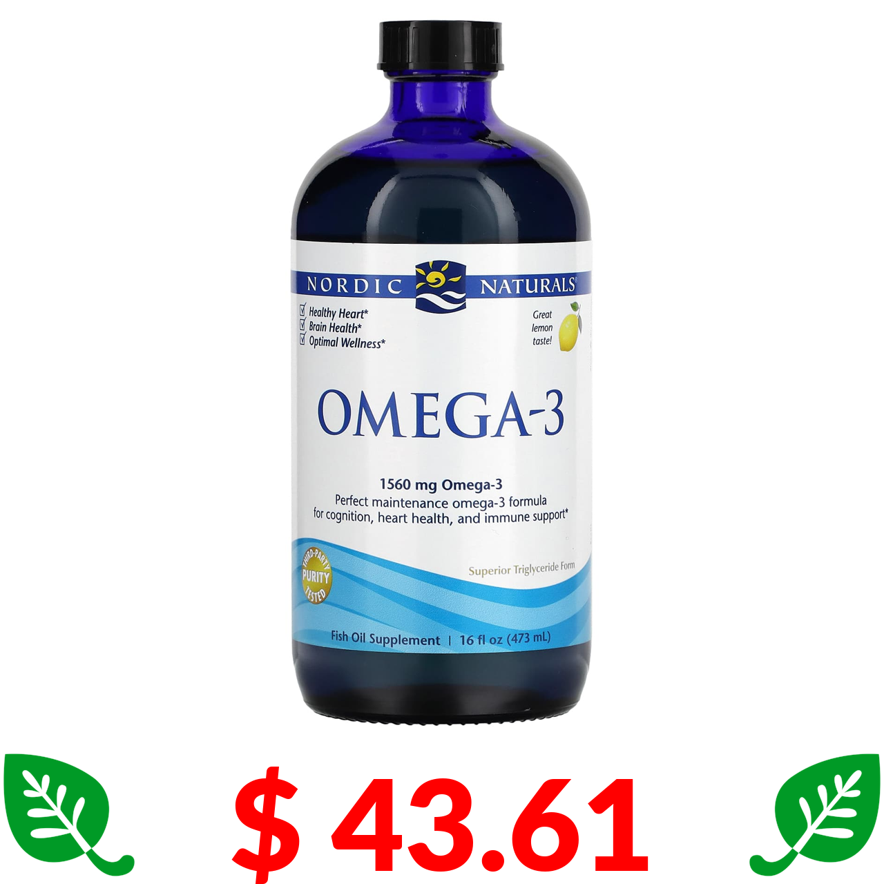 $ 43.61 Nordic Naturals, омега-3 зі смаком лимона, 1560 мг, 473 мл (16 рідк. унцій)