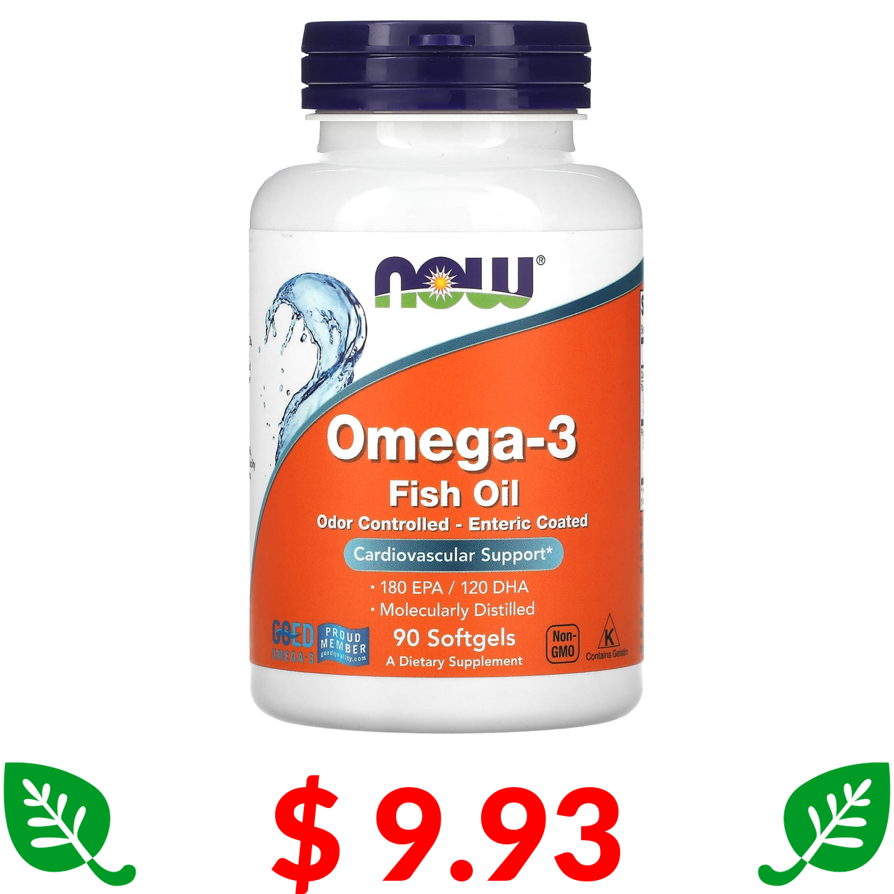 $ 9.93 Now Foods, Omega-3 Fish Oil, 90 Softgels