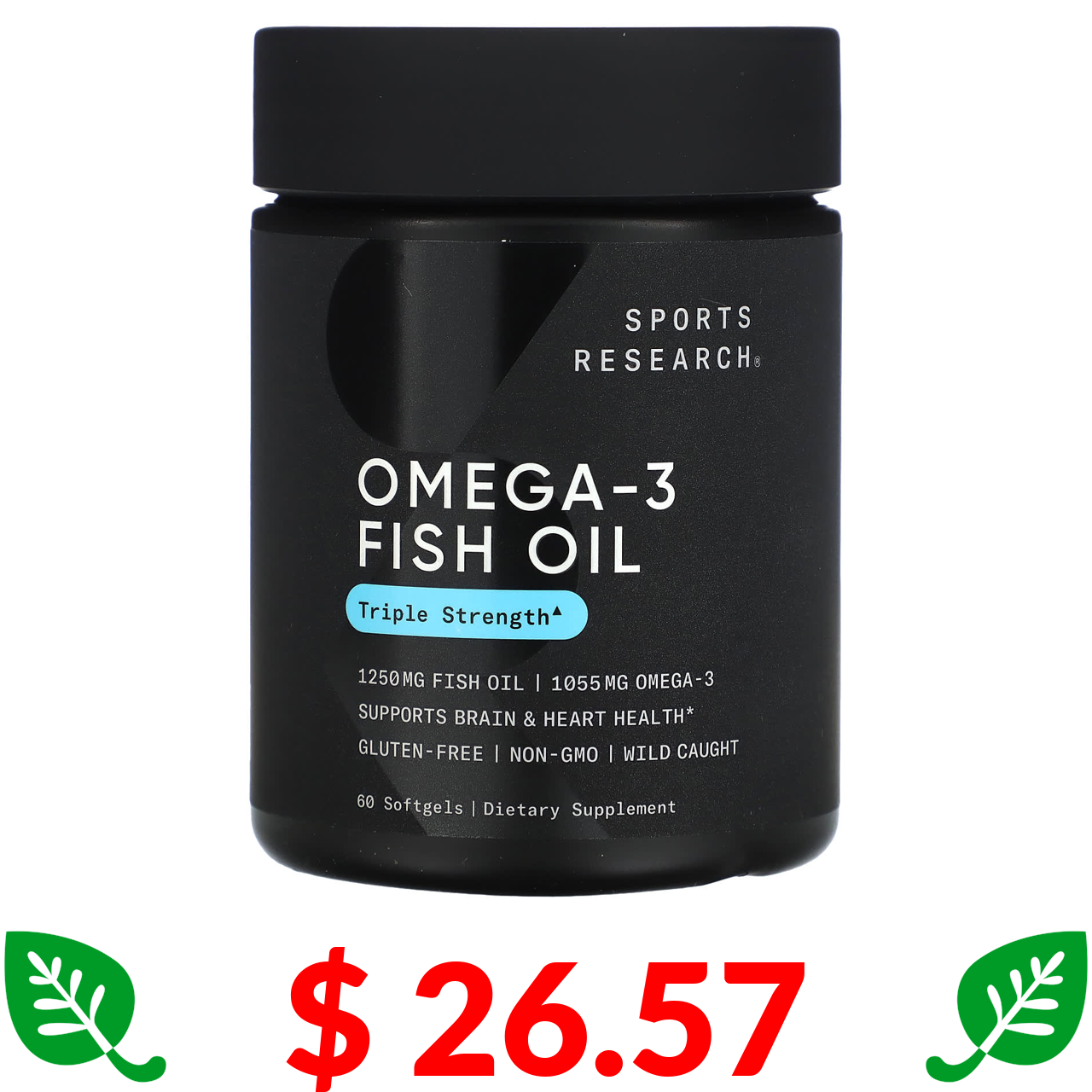 $ 26.57 Sports Research, риб’ячий жир з омега-3, потрійна сила, 1250 мг, 60 капсул