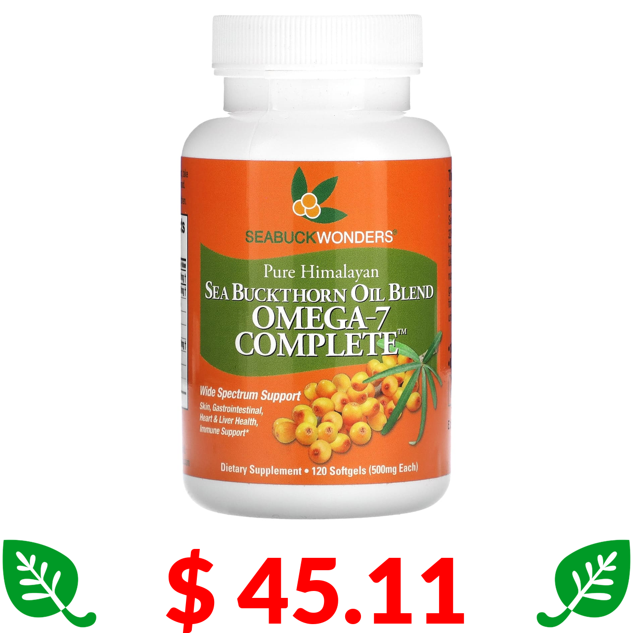 $ 45.11 SeaBuckWonders, Sea Buckthorn Oil Blend, Omega-7 Complete, 500 mg, 120 Softgels