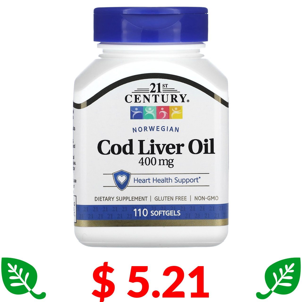 $ 5.21 21st Century, жир з печінки норвезької тріски, 400 мг, 110 капсул