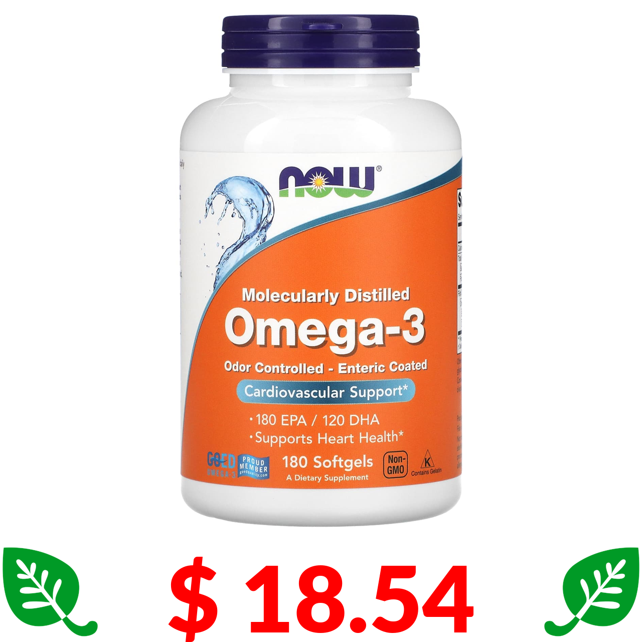 $ 18.54 Now Foods, омега-3, 180 мг ЕПК / 120 мг ДГК, 180 капсул, вкритих кишковорозчинною оболонкою