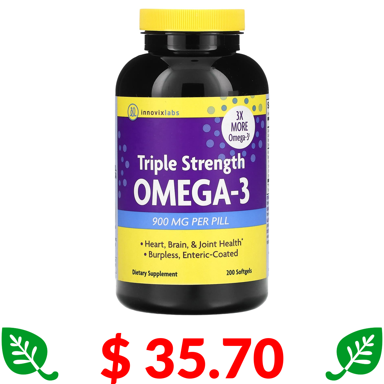 $ 35.70 InnovixLabs, омега-3 потрійної сили, 900 мг, 200 капсул