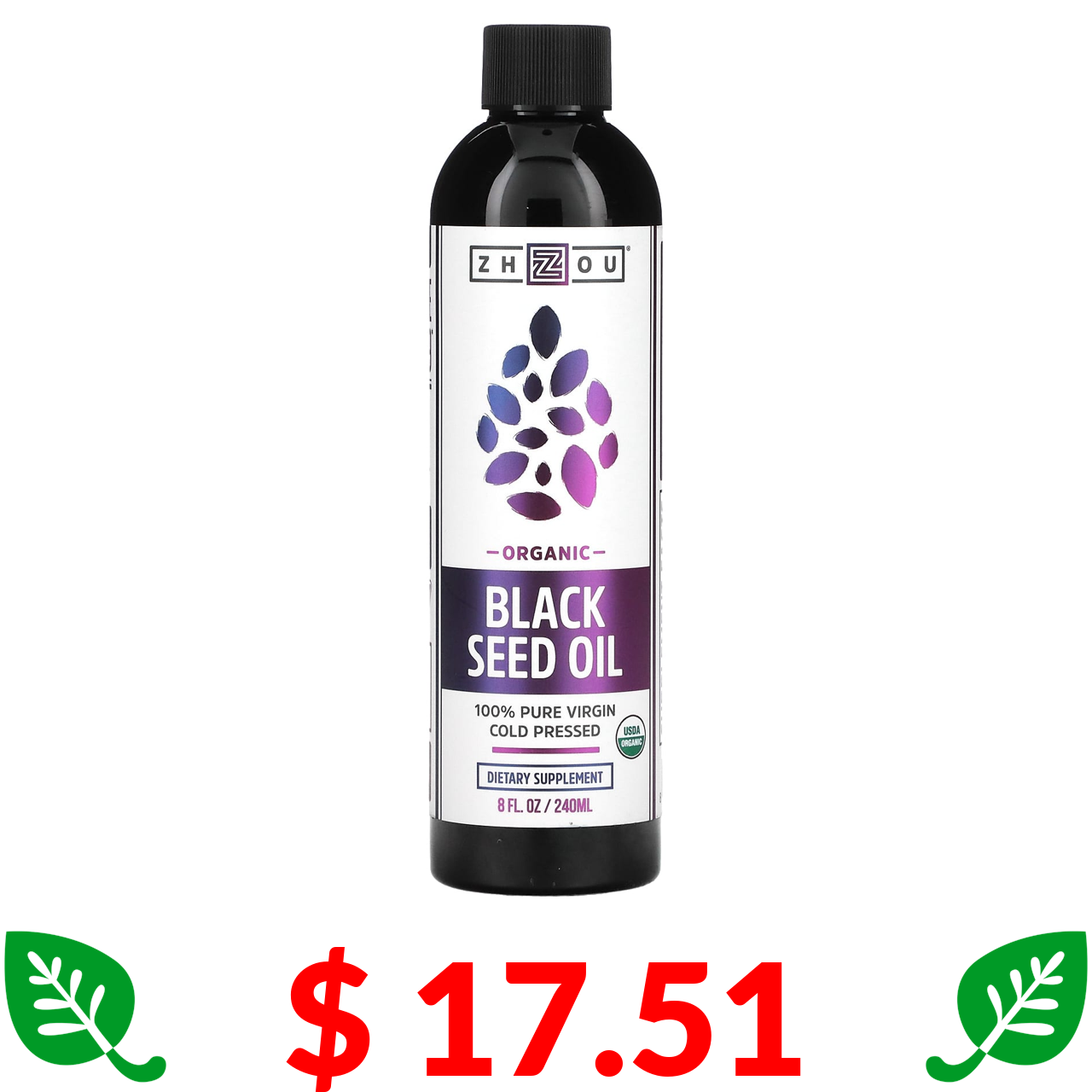 $ 17.51 Zhou Nutrition, Organic, 100% Pure Virgin Black Seed Oil, Cold Pressed, 8 fl oz (240 ml)