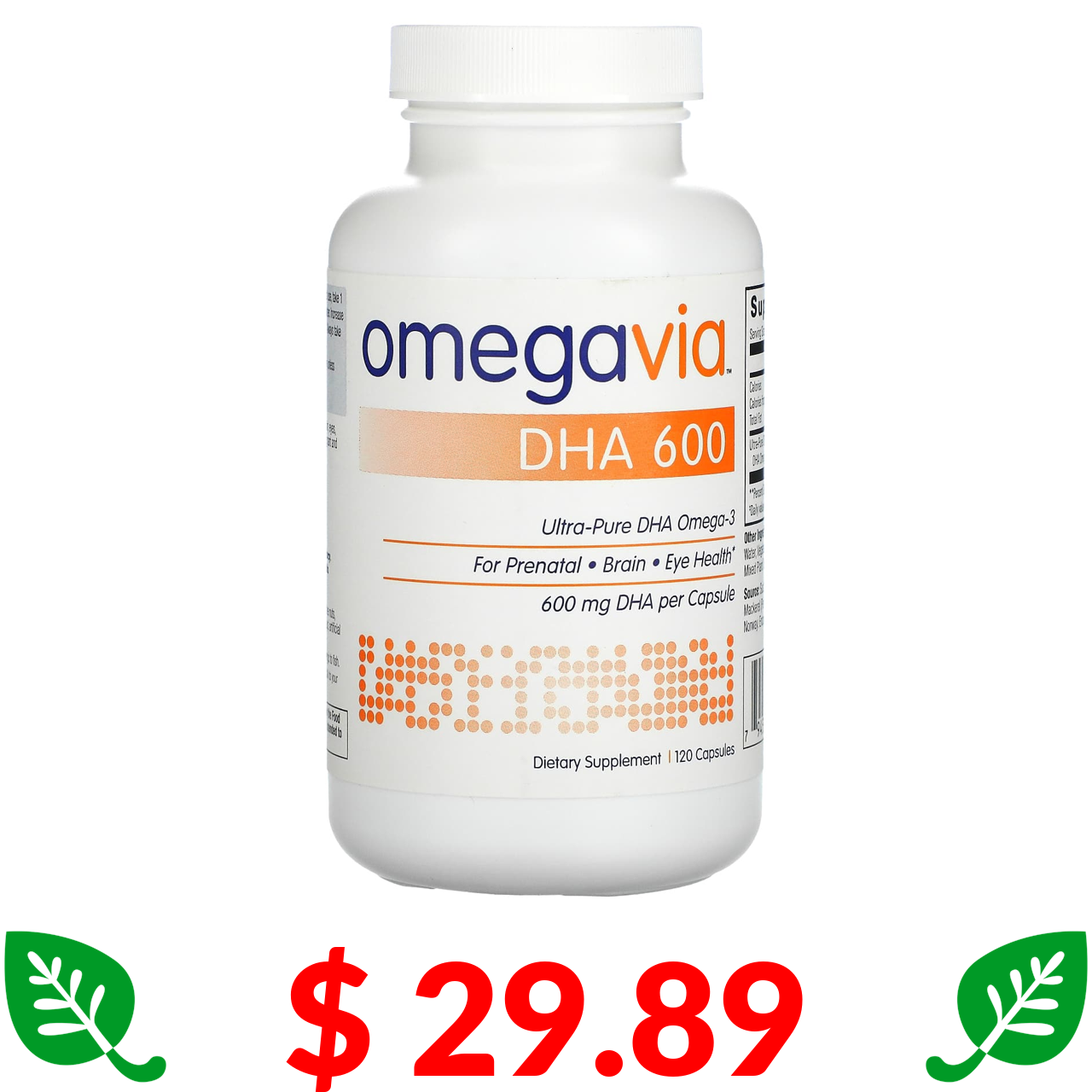 $ 29.89 OmegaVia, DHA 600, 120 Capsules