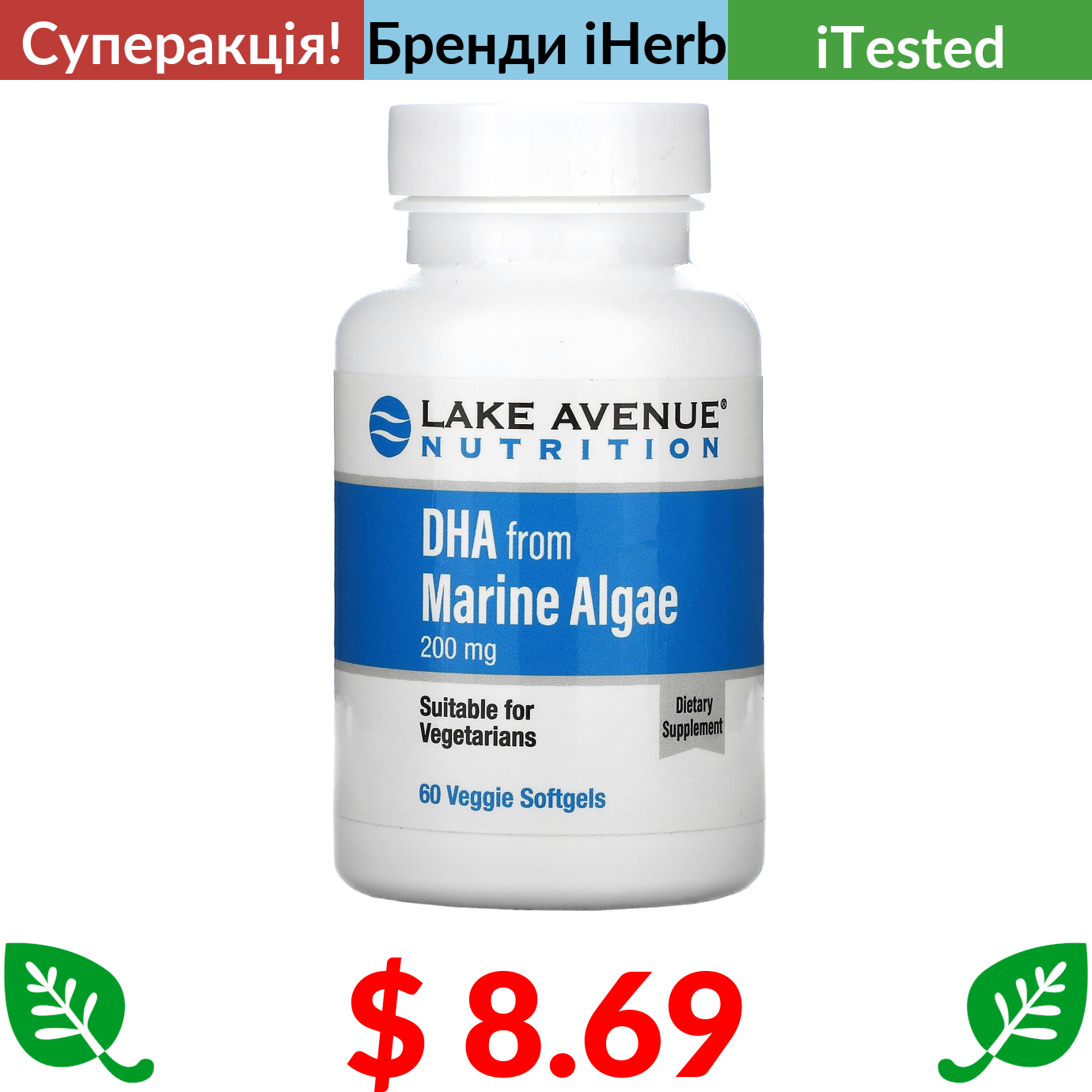 $ 8.69 Lake Avenue Nutrition, ДГК з морських водоростей, 200 мг, 60 рослинних капсул