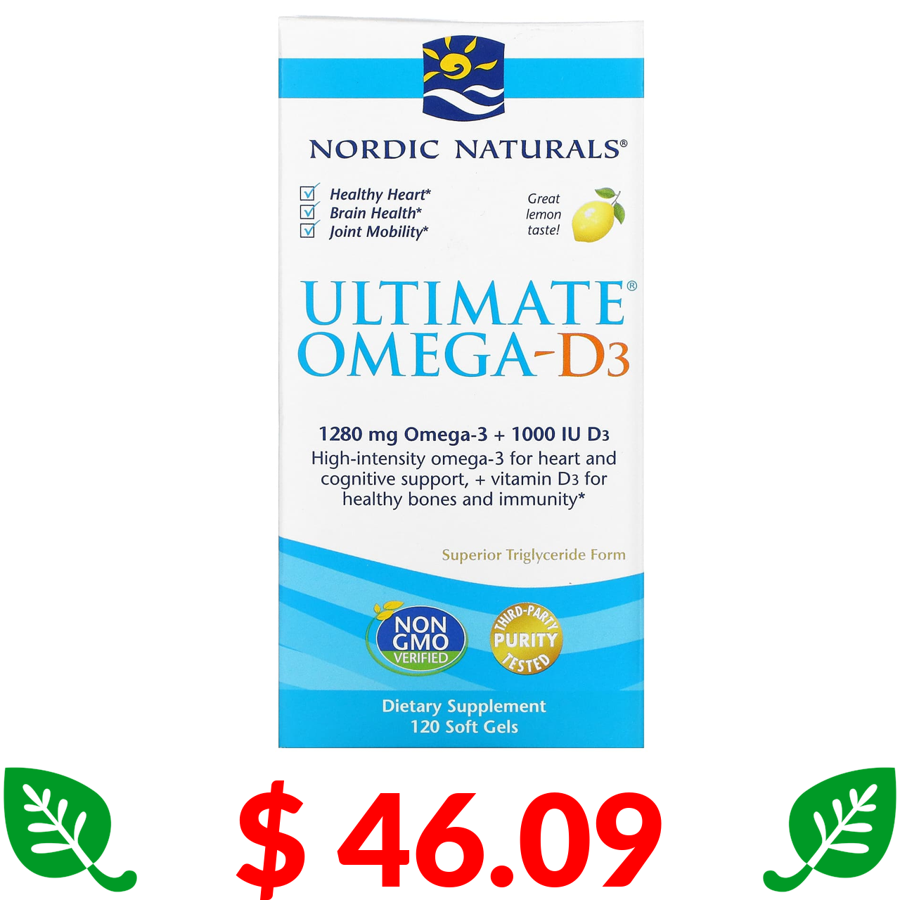 $ 46.09 Nordic Naturals, Ultimate Omega-D3, лимон, 120 капсул