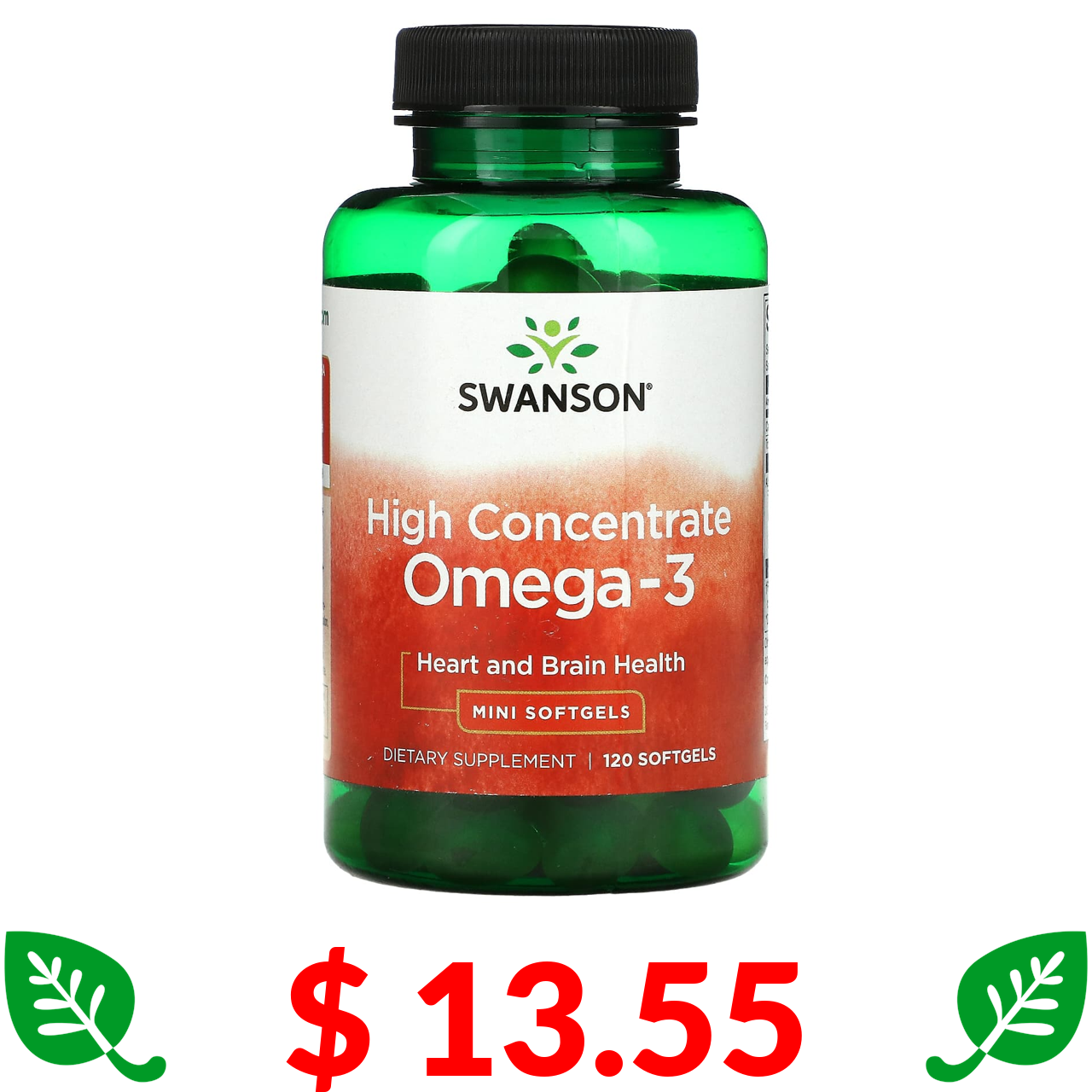 $ 13.55 Swanson, High Concentrate Omega-3, Heart and Brain Health, 120 Mini Softgels
