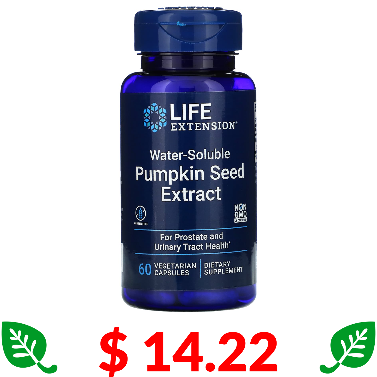 $ 14.22 Life Extension, Water-Soluble Pumpkin Seed Extract, 60 Vegetarian Capsules