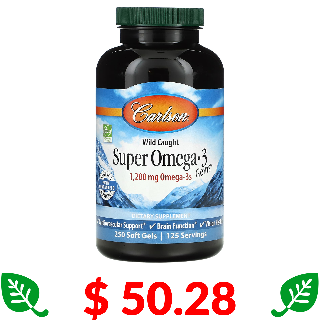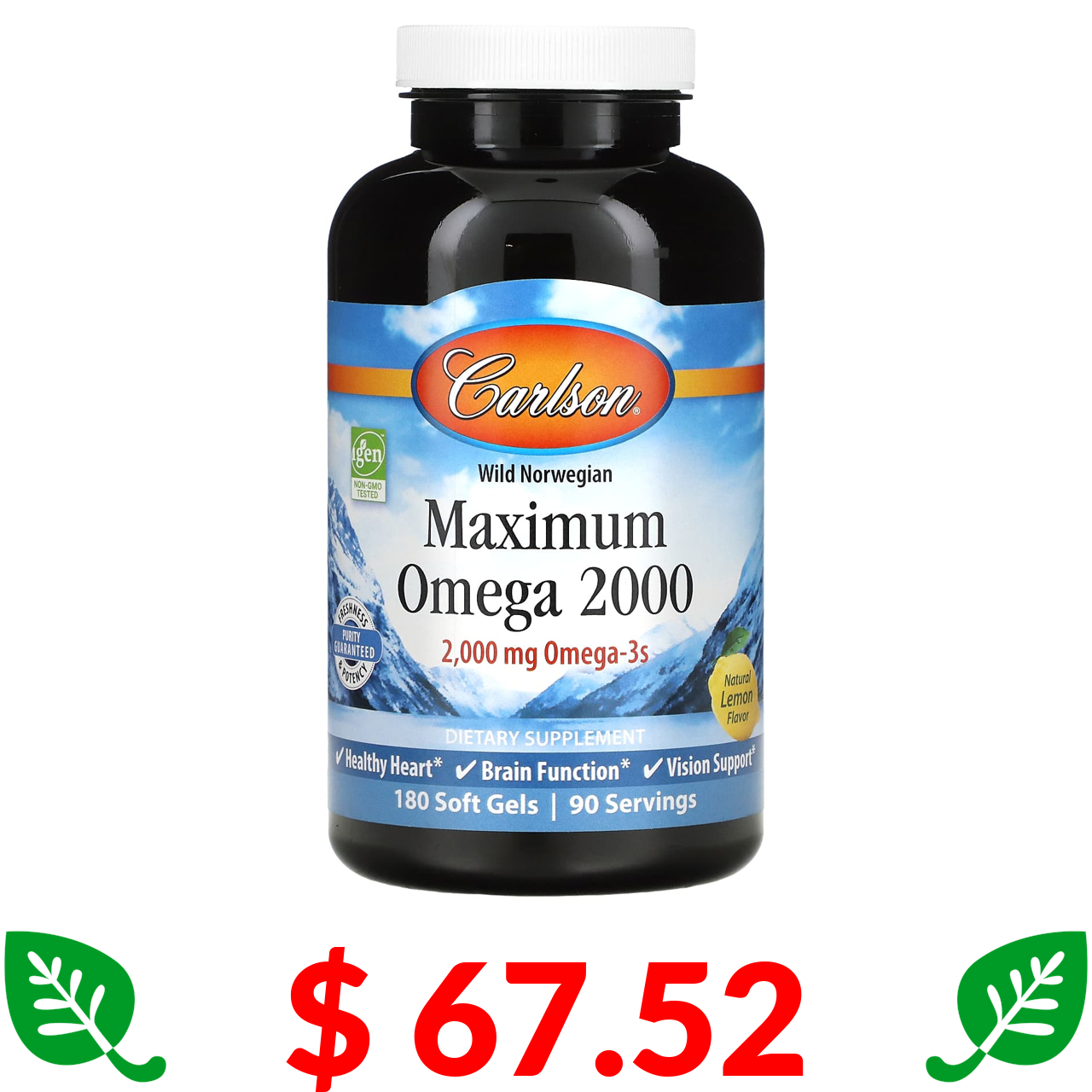 $ 10.87 Carlson, Maximum Omega 2000, Natural Lemon Flavor, 1,000 mg, 30 Softgels