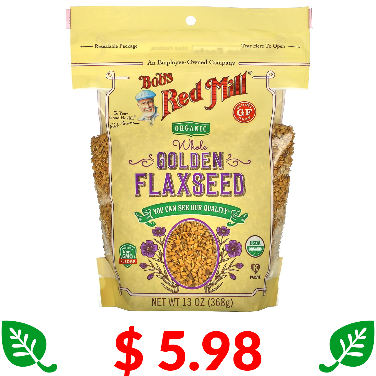 $ 5.98 Bob's Red Mill, Organic Whole Golden Flaxseed, 13 oz (368 g)