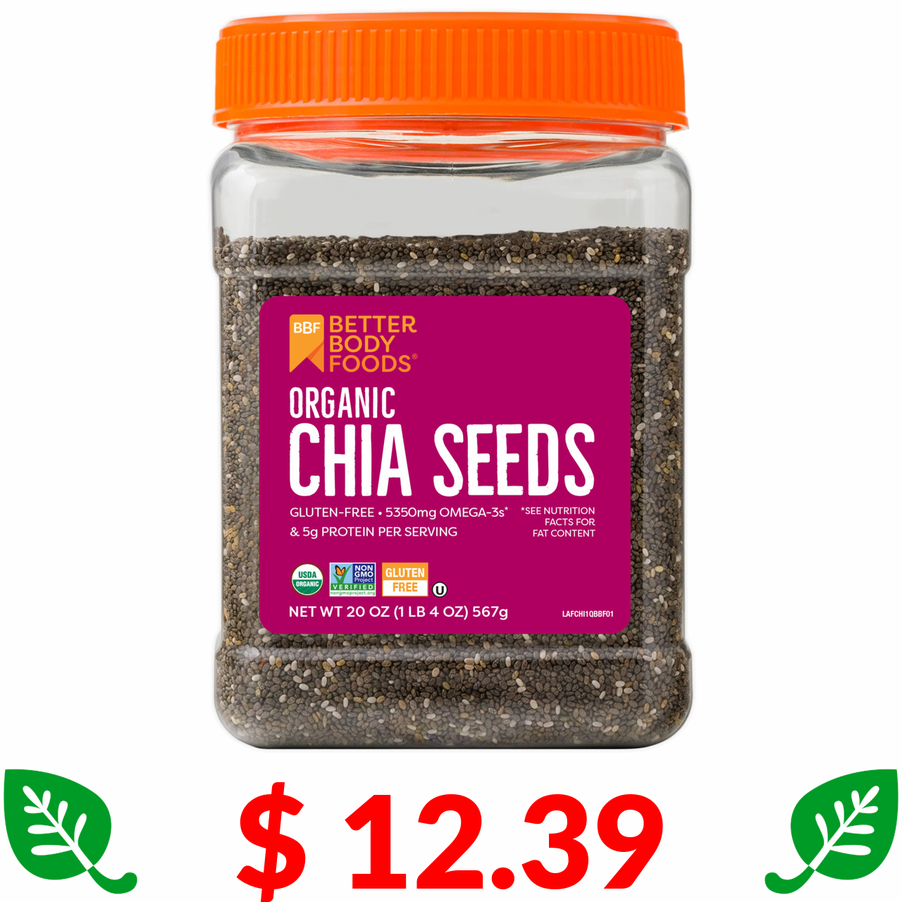 $ 12.39 BetterBody Foods, Organic Chia Seeds, 20 oz (567 g)