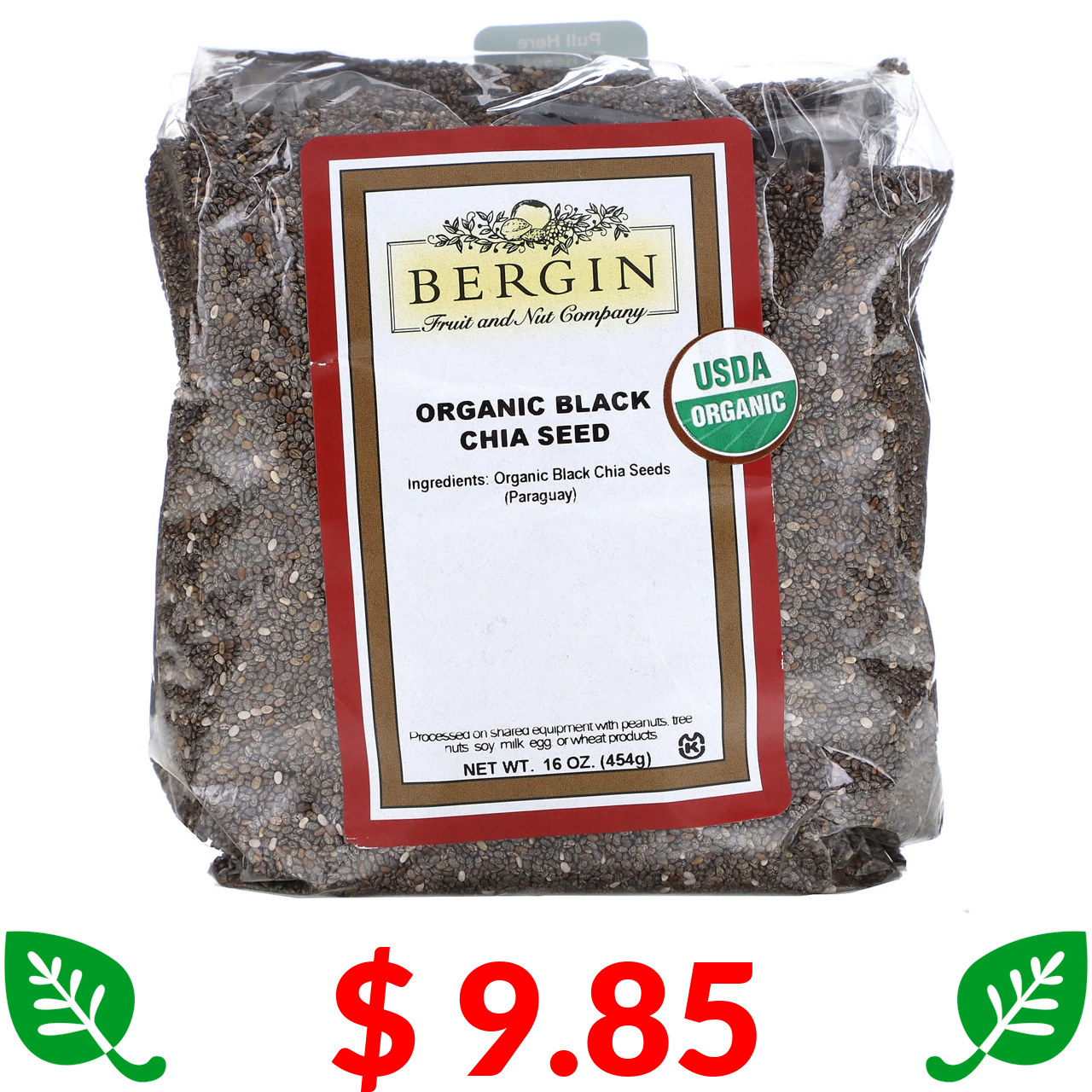 $ 9.85 Bergin Fruit and Nut Company, Органічне чорне насіння чіа, 16 унцій (454 г)