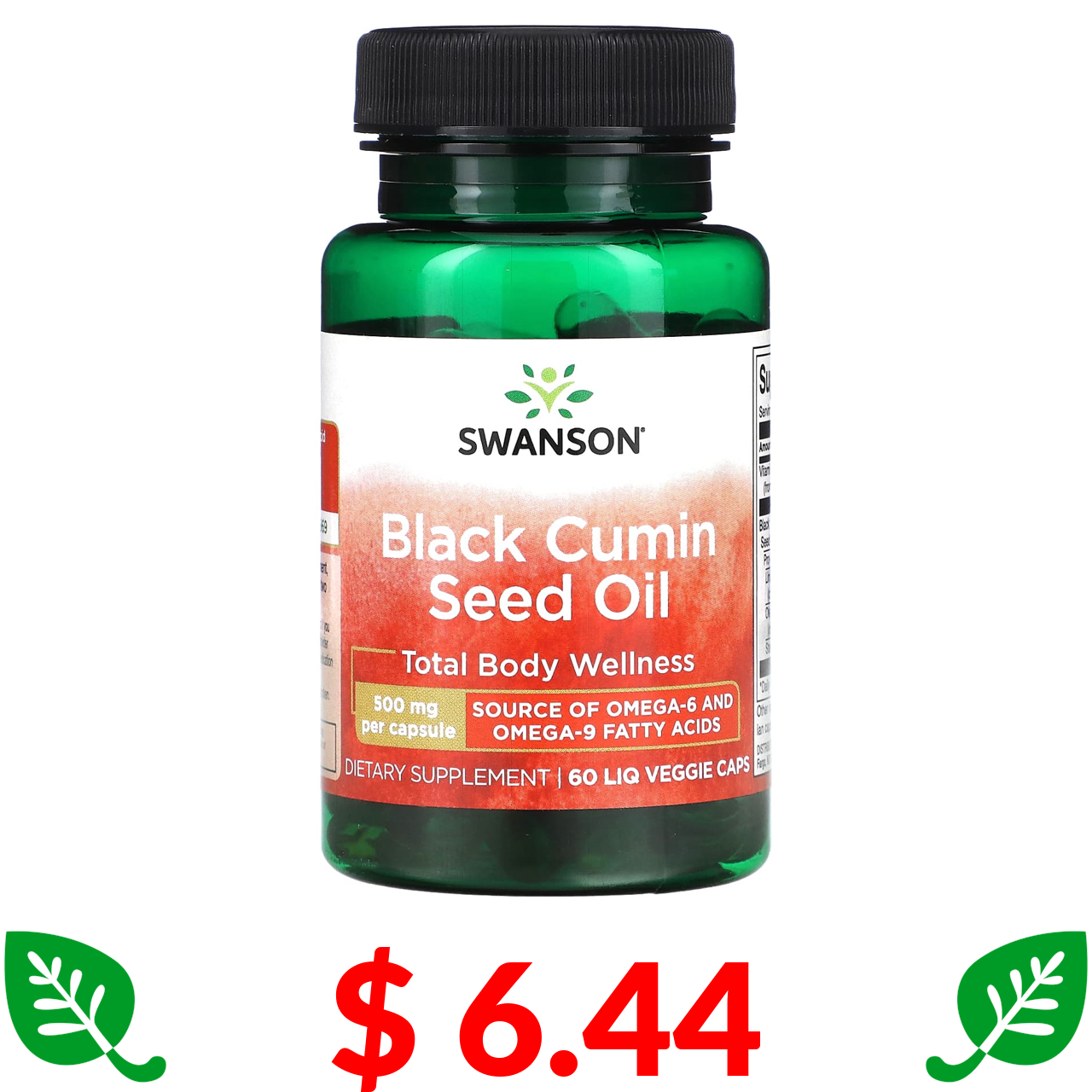 $ 6.44 Swanson, олія з насіння чорного кмину, 500 мг, 60 вегетаріанських капсул з рідиною
