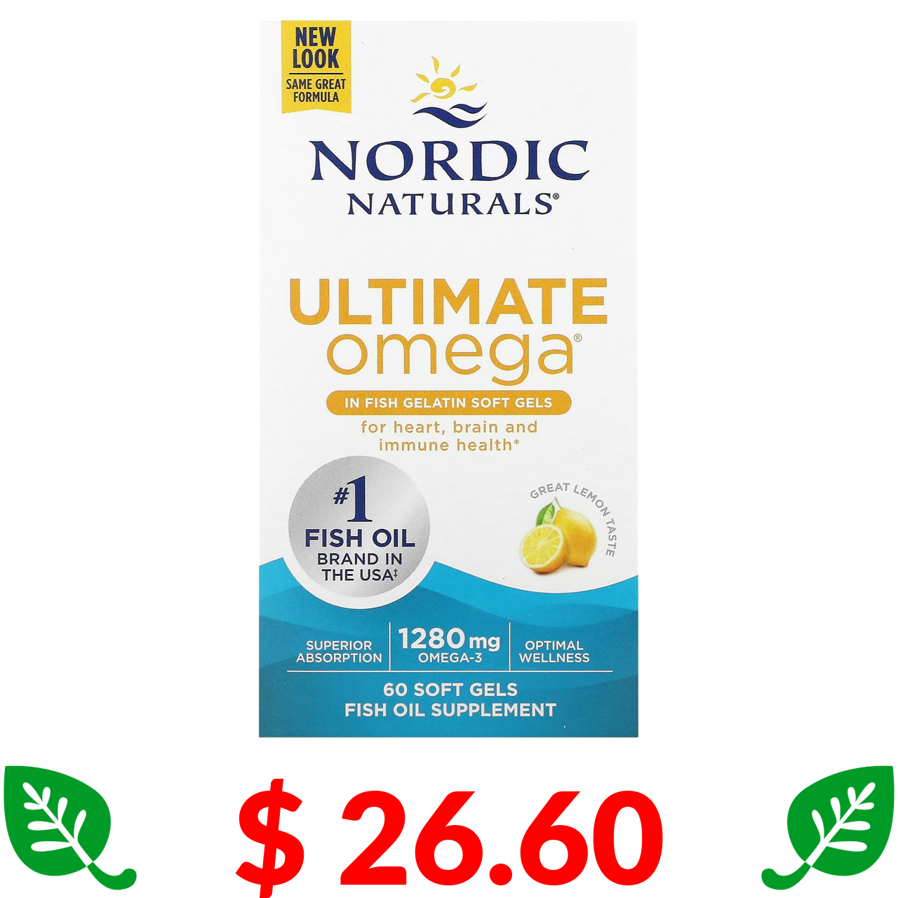 $ 26.60 Nordic Naturals, Ultimate Omega, лимон, 640 мг, 60 капсул