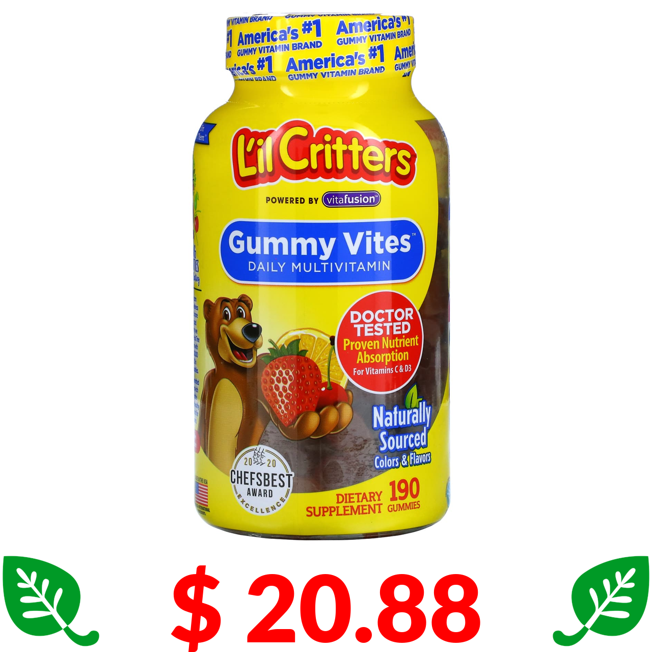 $ 20.88 Лил Криттерс, Gummy Vites, ежедневные мультивитамины, 190 жевательных мармеладок