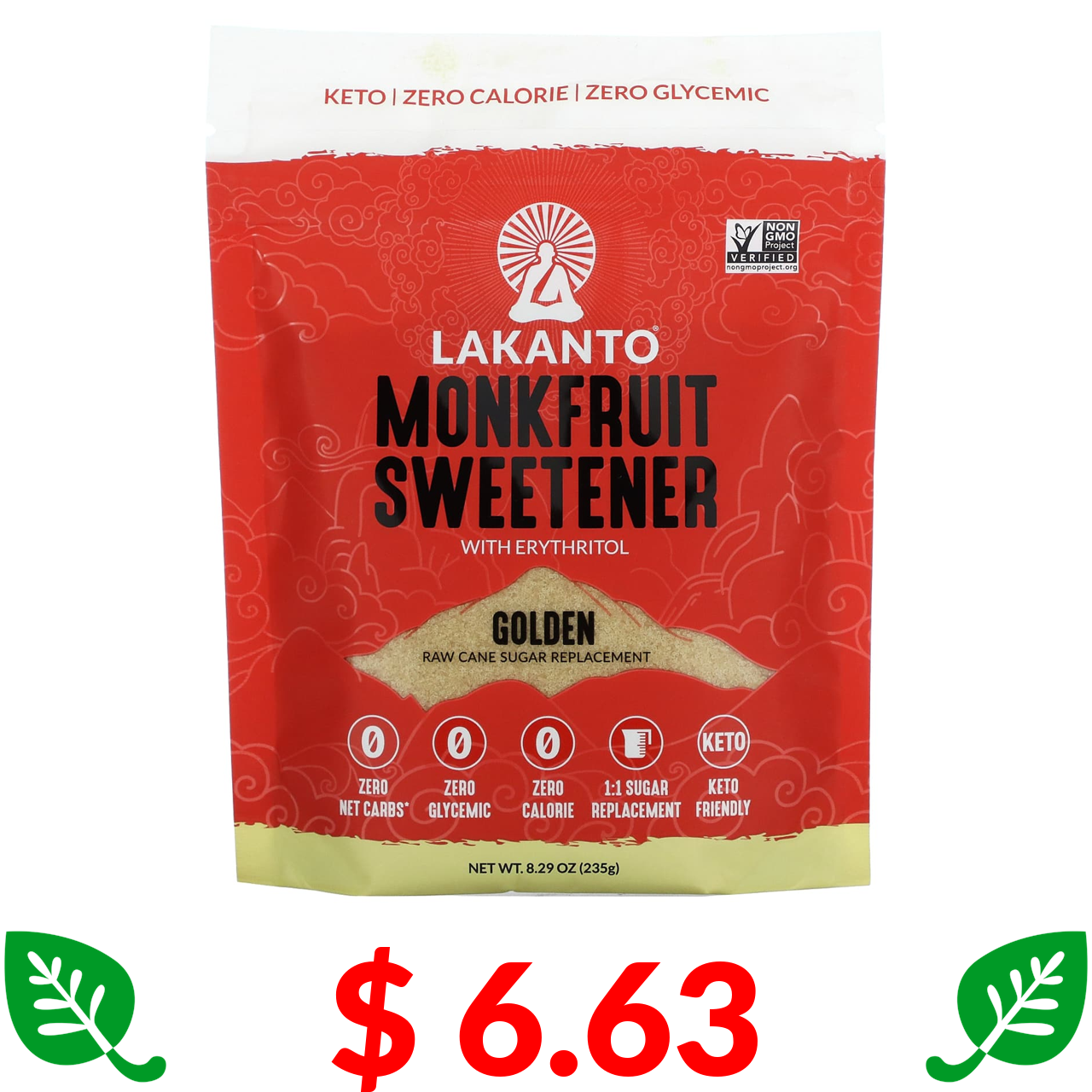 $ 6.63 Лаканто, подсластитель из архата с эритритолом, золотой, 235 г (8,29 унции)