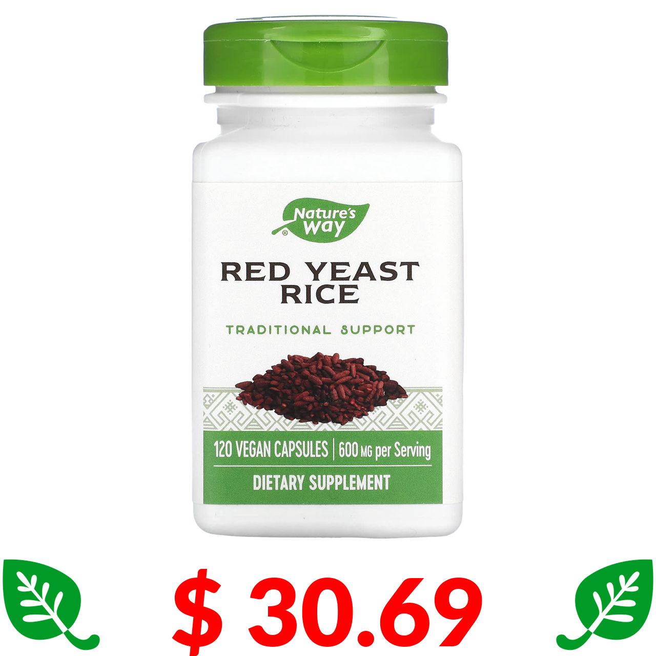 $ 30.69 Натурес Вэй, Красный дрожжевой рис, 600 мг, 120 веганских капсул