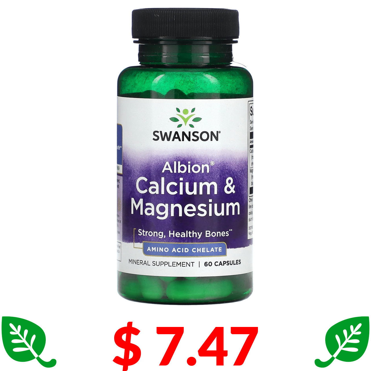 $ 7.47 Swanson, Albion, кальций и магний, 60 капсул