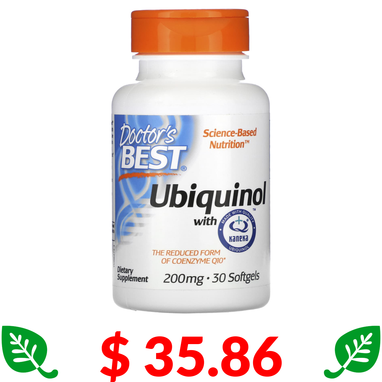 $ 35.86 Докторс Бэст, Убихинол с Kaneka, 200 мг, 30 мягких желатиновых капсул
