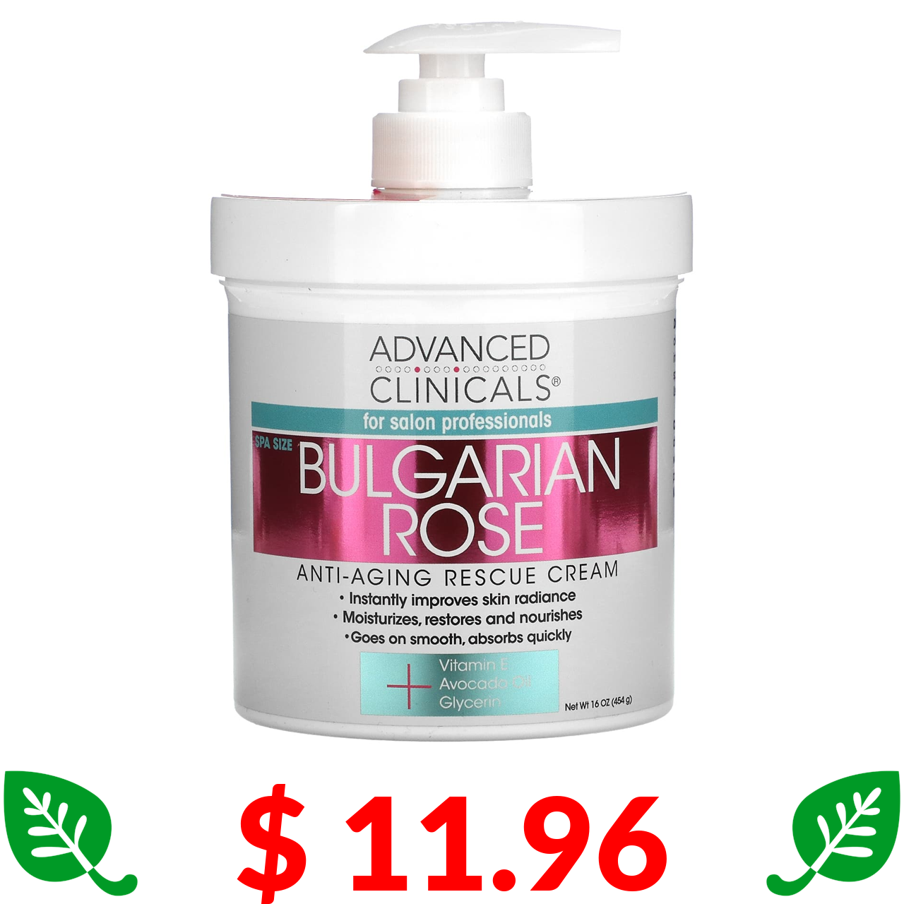 $ 11.96 Advanced Clinicals, Спасательный антивозрастной крем, болгарская роза, 16 унций (454 г)