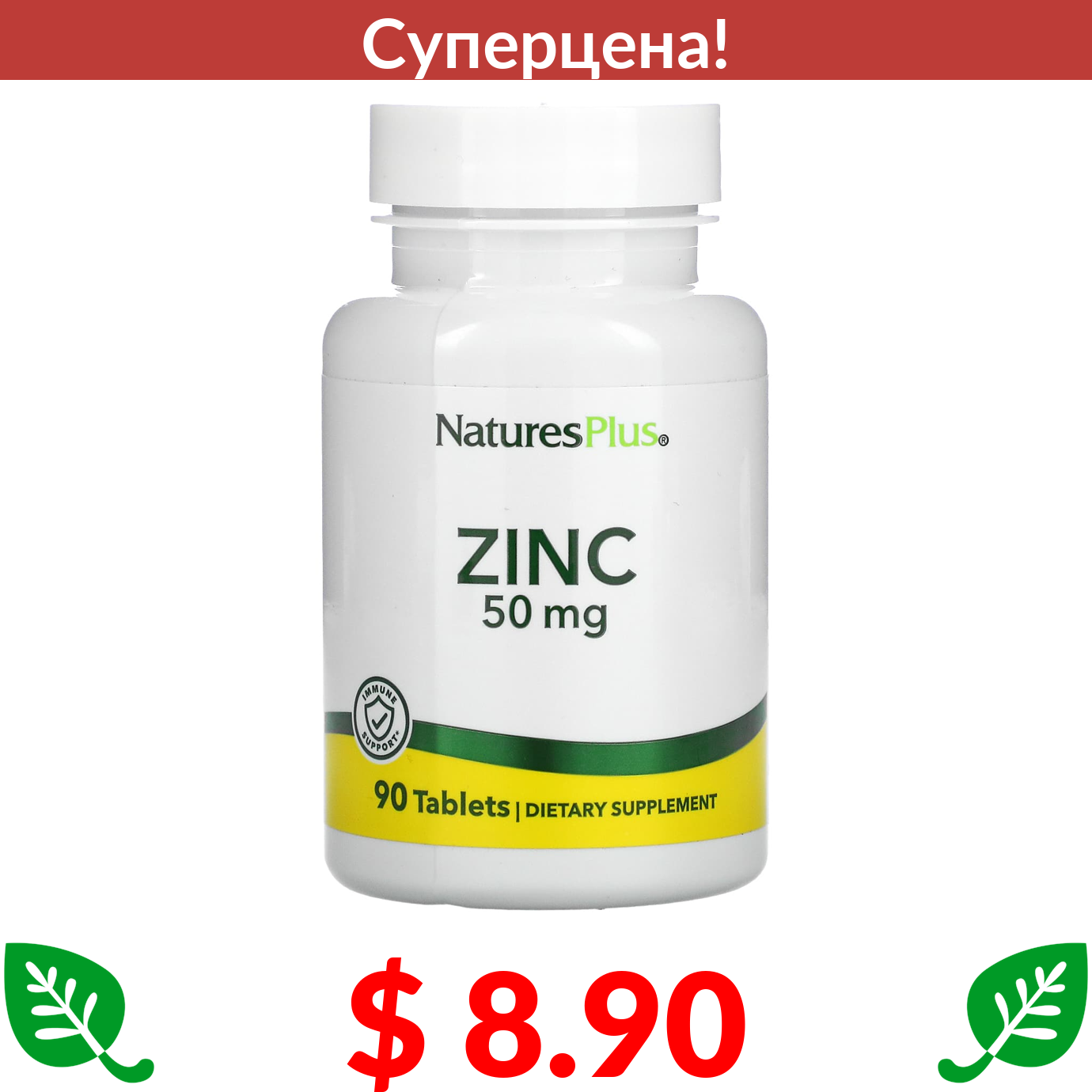 $ 8.90 Натурес Плюс, Цинк, 50 мг, 90 таблеток