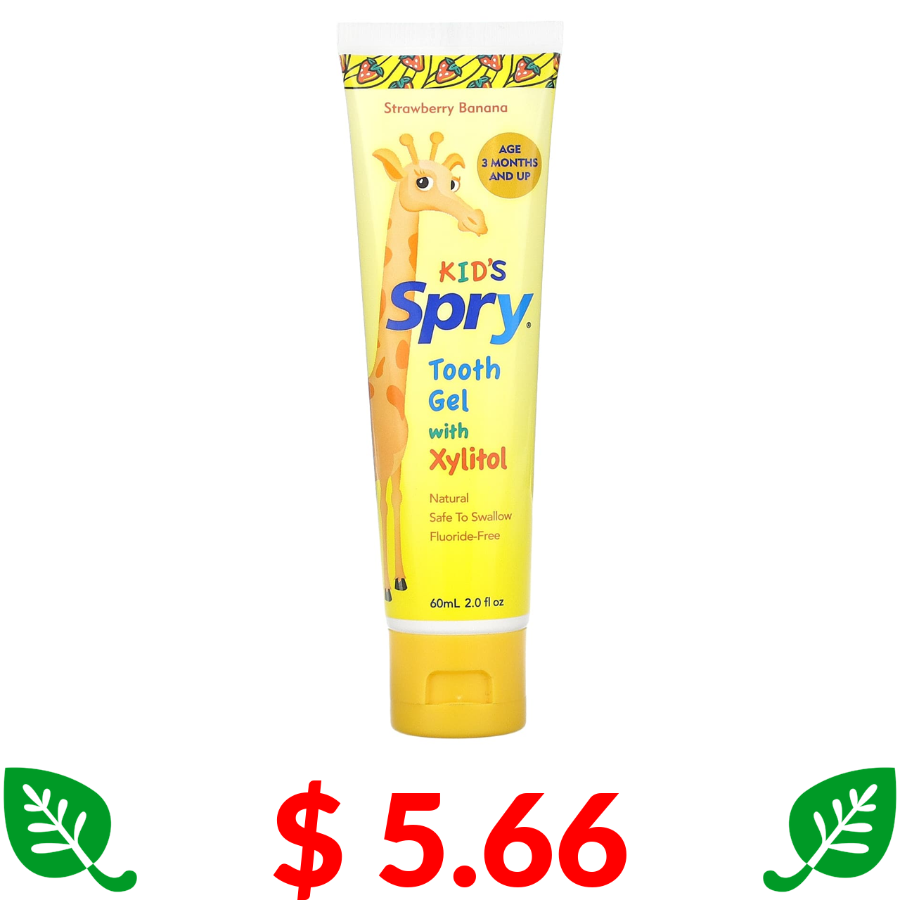$ 5.66 Кслир, Kid's Spry, зубной гель с ксилитом, клубника банан, 60 мл, (2,0 жидкой унции)