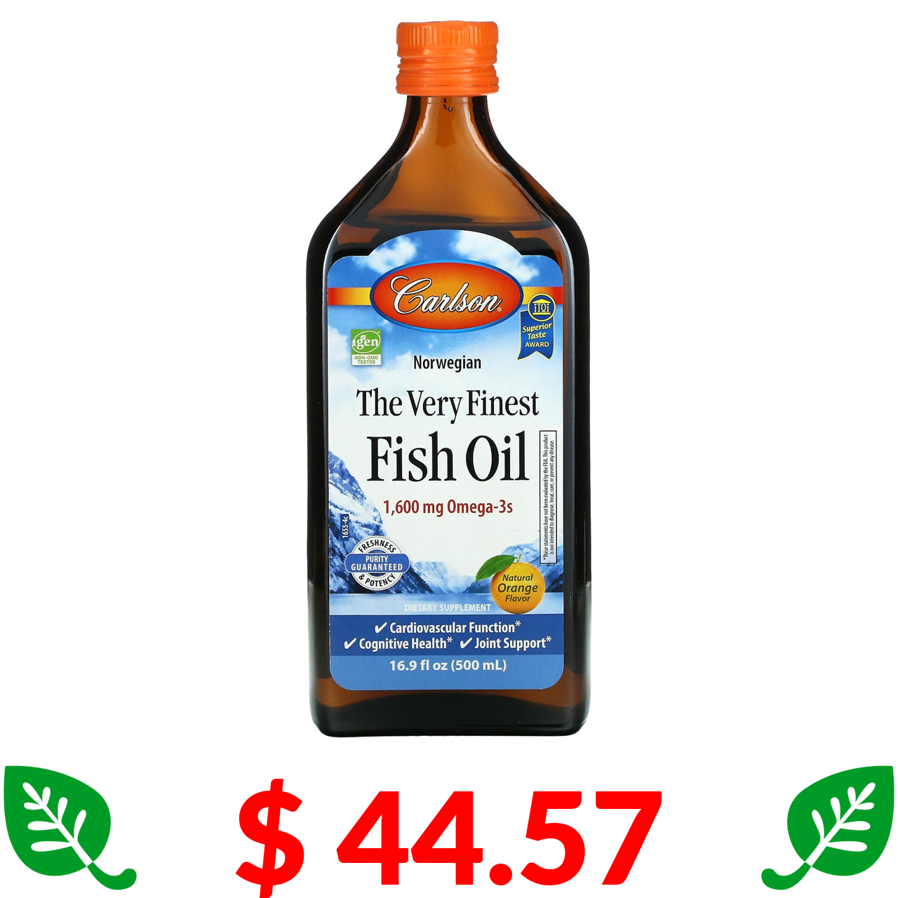 $ 44.57 Carlson, Норвежская серия, самый лучший рыбий жир, натуральный апельсиновый вкус, 1600 мг, 500 мл (16,9 жидких унций)