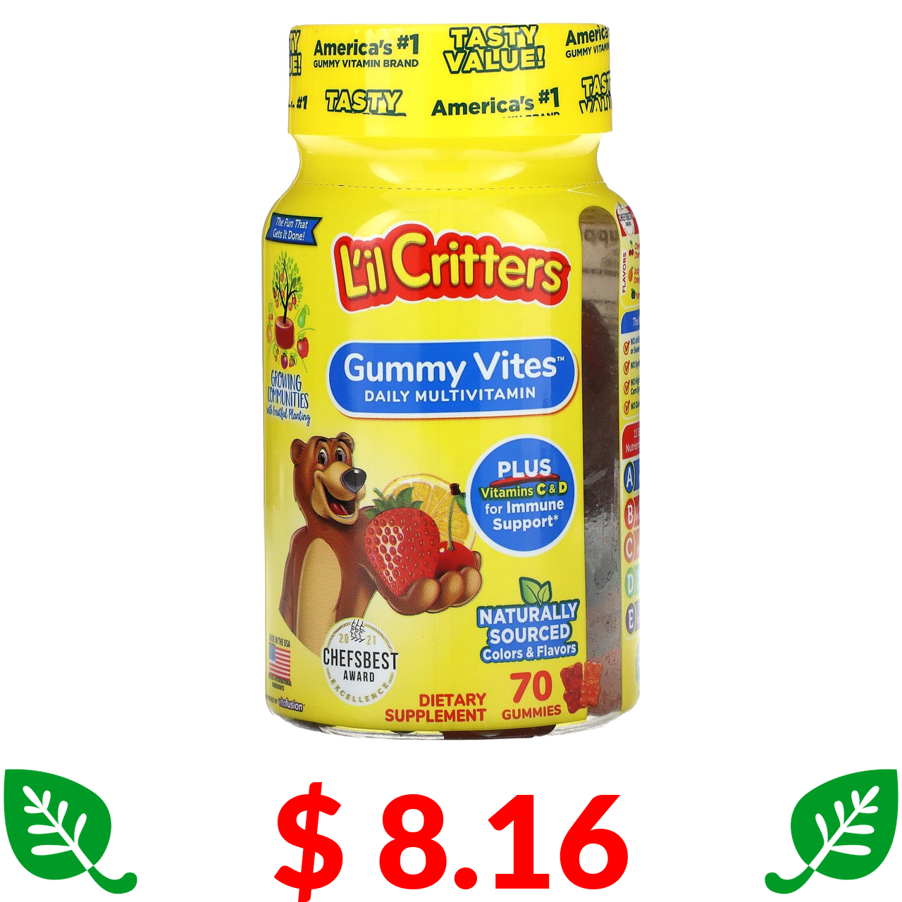$ 8.16 Лил Криттерс, Gummy Vites, полноценный мультивитаминный комплекс, 70 жевательных конфет